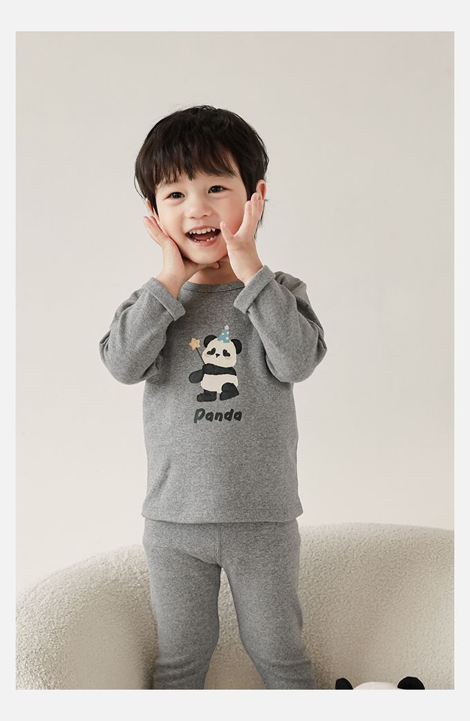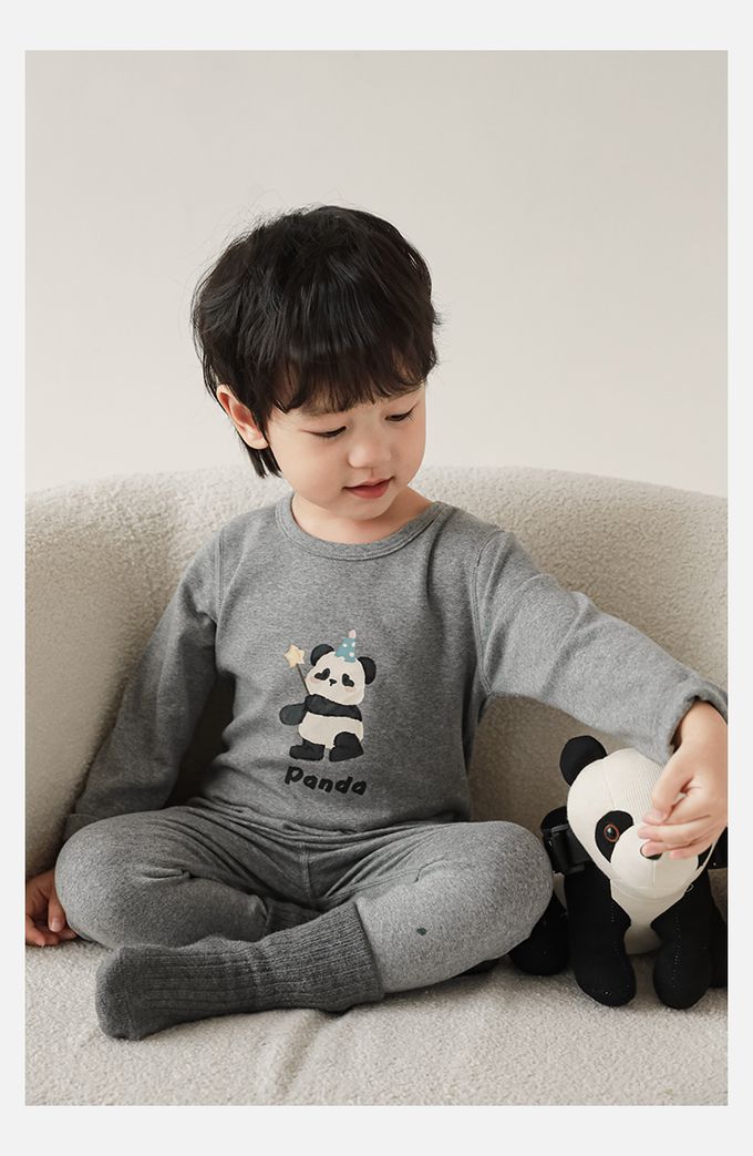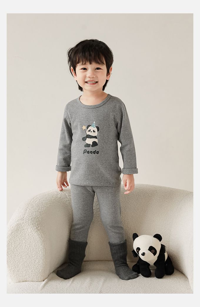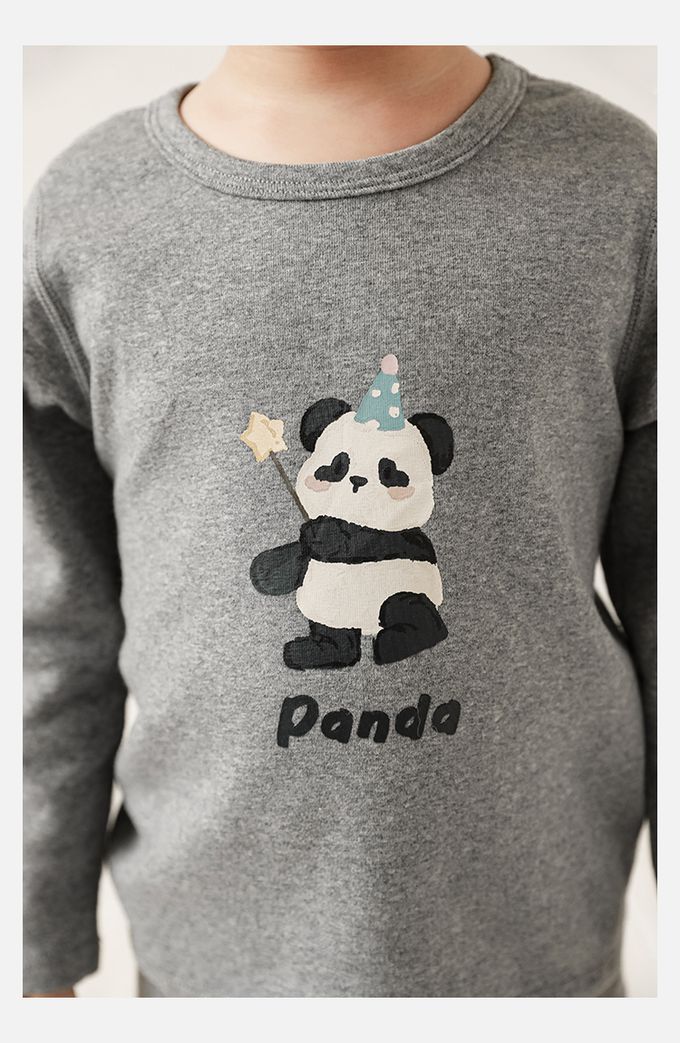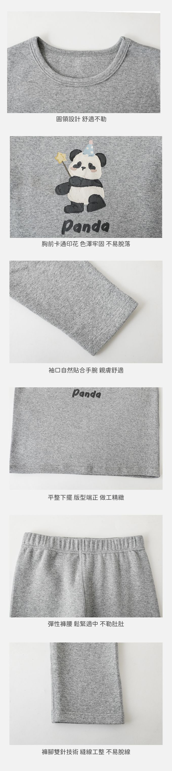 高彈舒適無骨縫制長袖家居服套裝-灰色熊貓