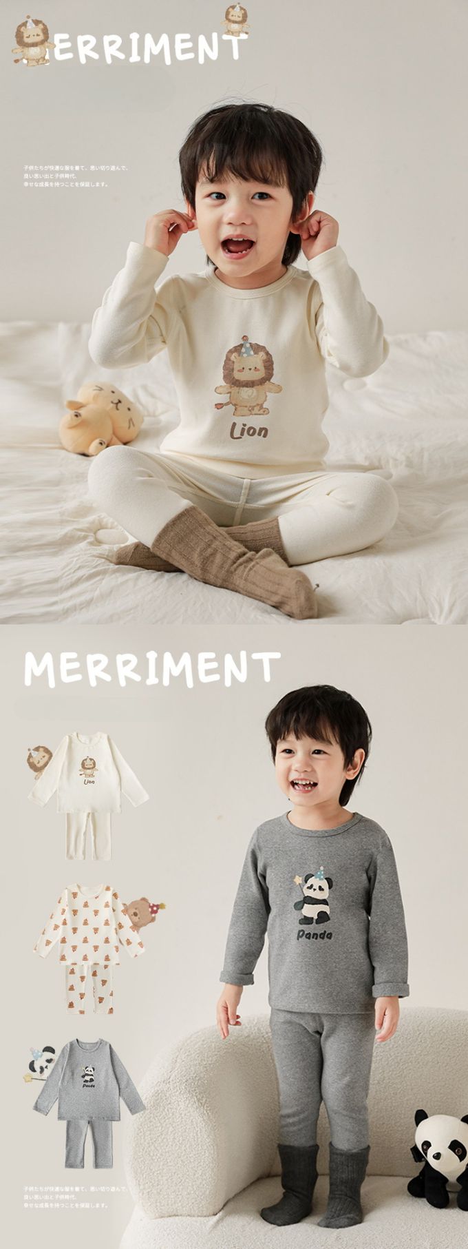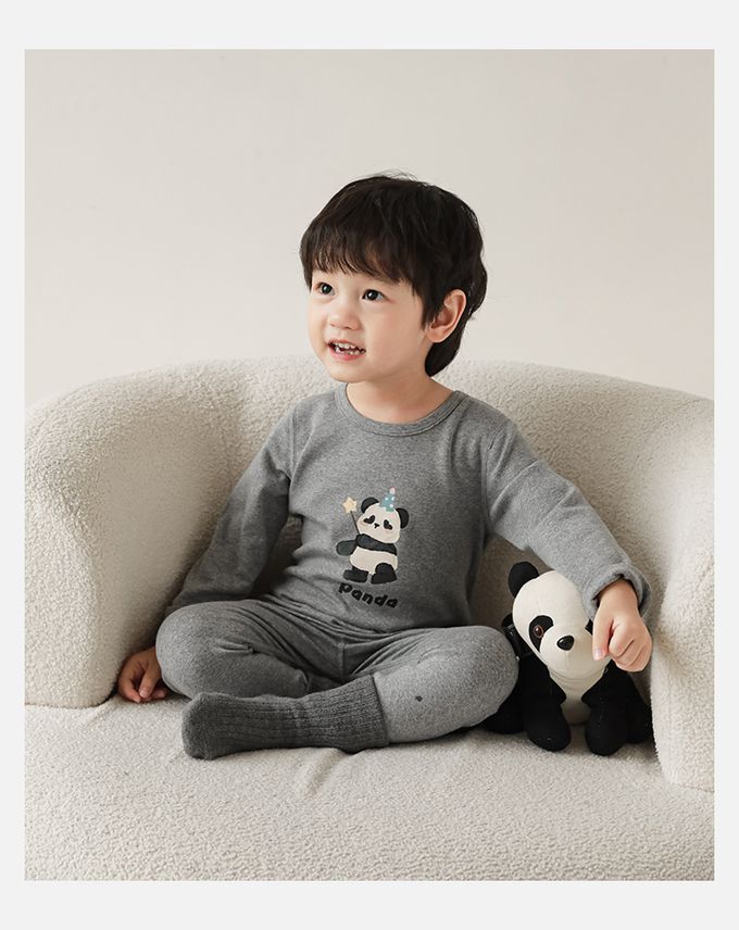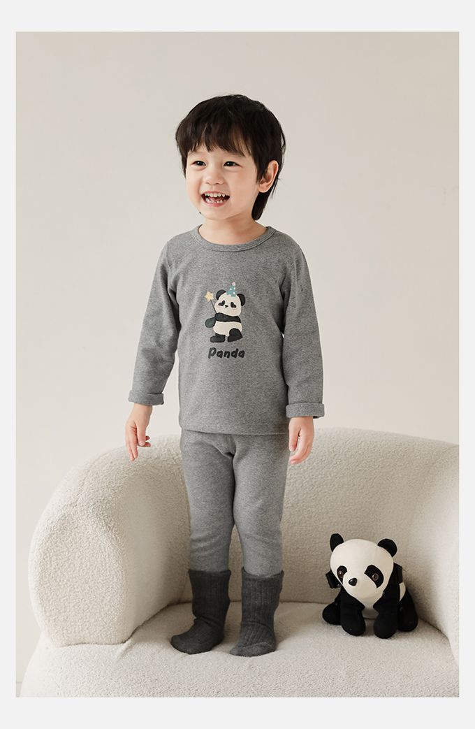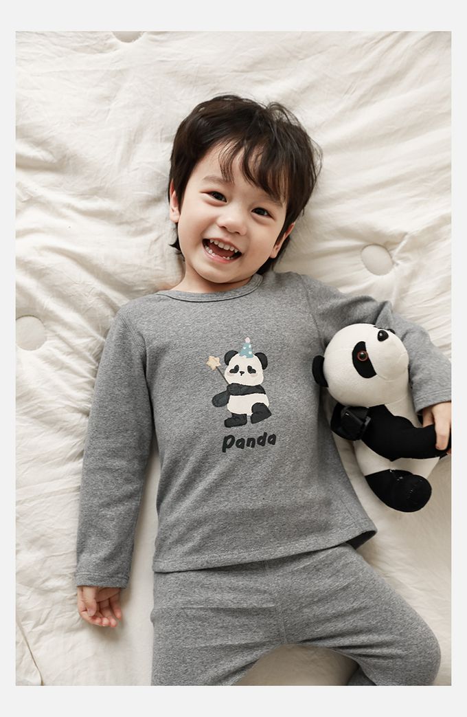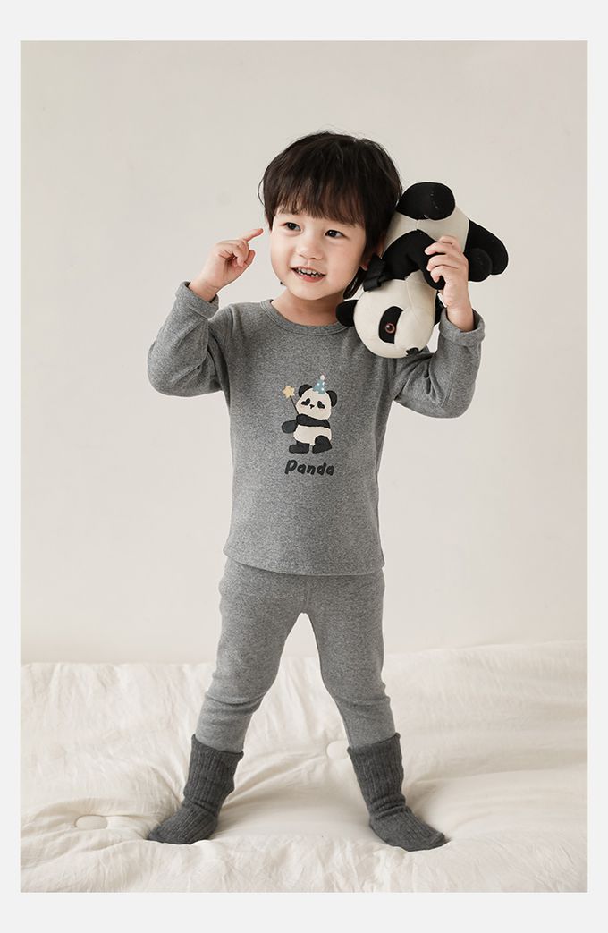 高彈舒適無骨縫制長袖家居服套裝-灰色熊貓