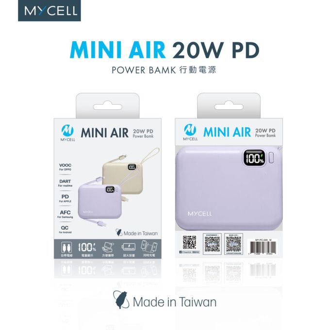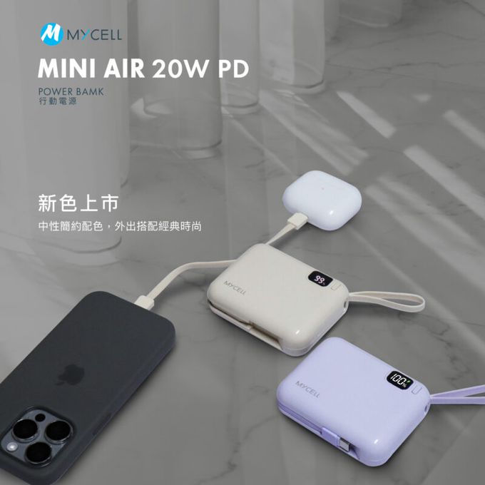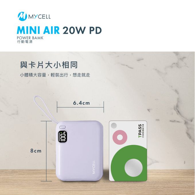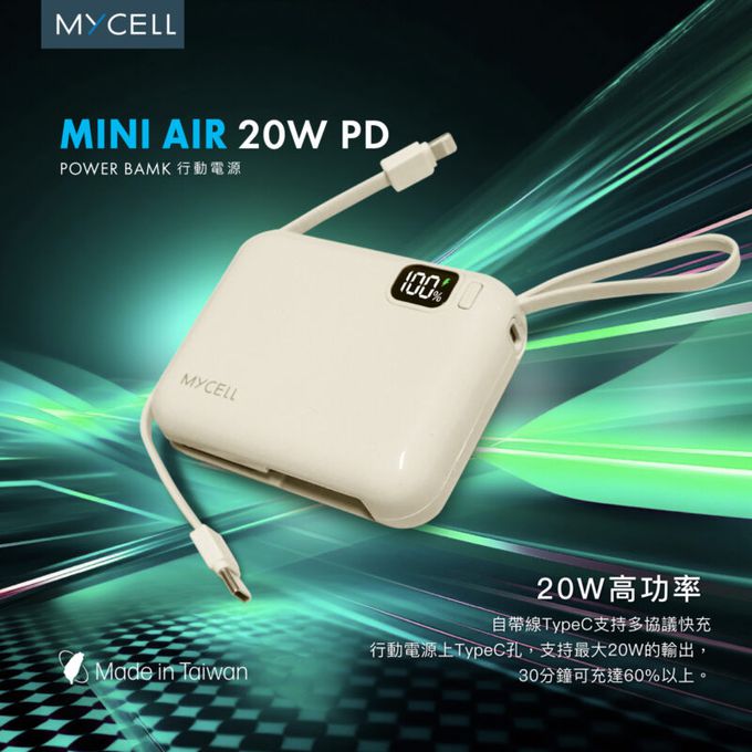 MYCELL - Mini Air 20W PD 10000mAh 閃充行動電源 自帶線可拆式-藍色