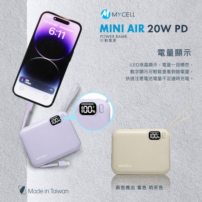 • 品名:Mini Air 20W PD 10000mAh 閃充行動電源 自帶線可拆式