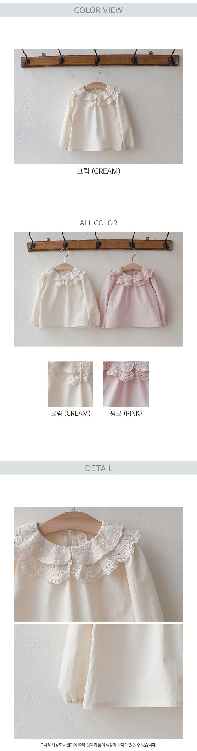 韓國 Puellaflo - 層次鏤空荷葉領縮口袖襯衫-淡粉