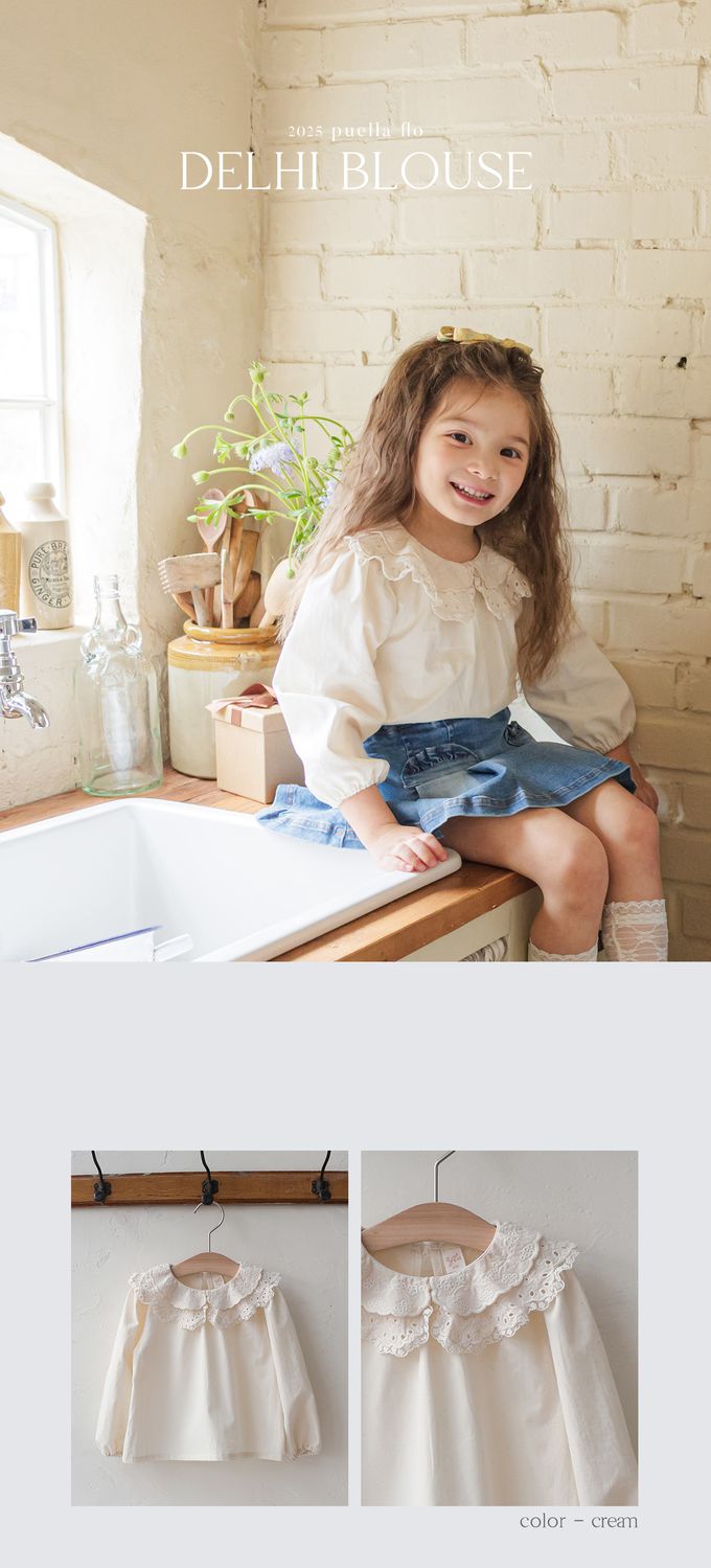 韓國 PuellaFLO - 層次鏤空荷葉領縮口袖襯衫-象牙白