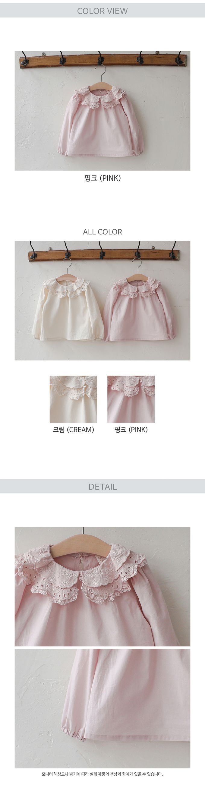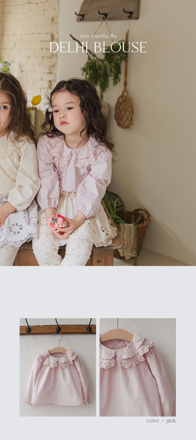 韓國 PuellaFLO - 層次鏤空荷葉領縮口袖襯衫-淡粉