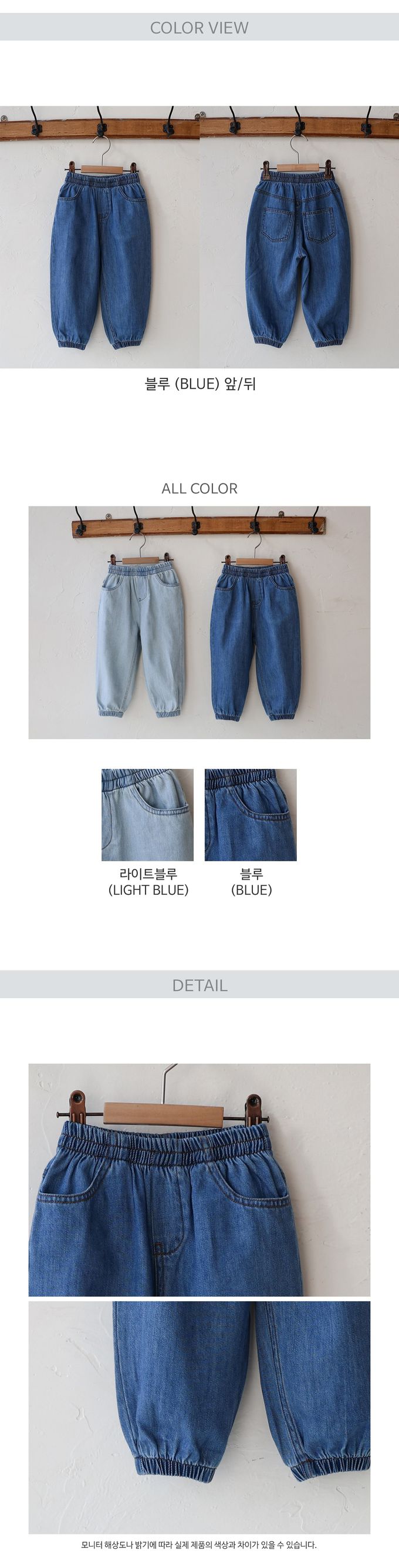 韓國 PuellaFLO - 鬆緊腰丹寧縮口長褲-中青
