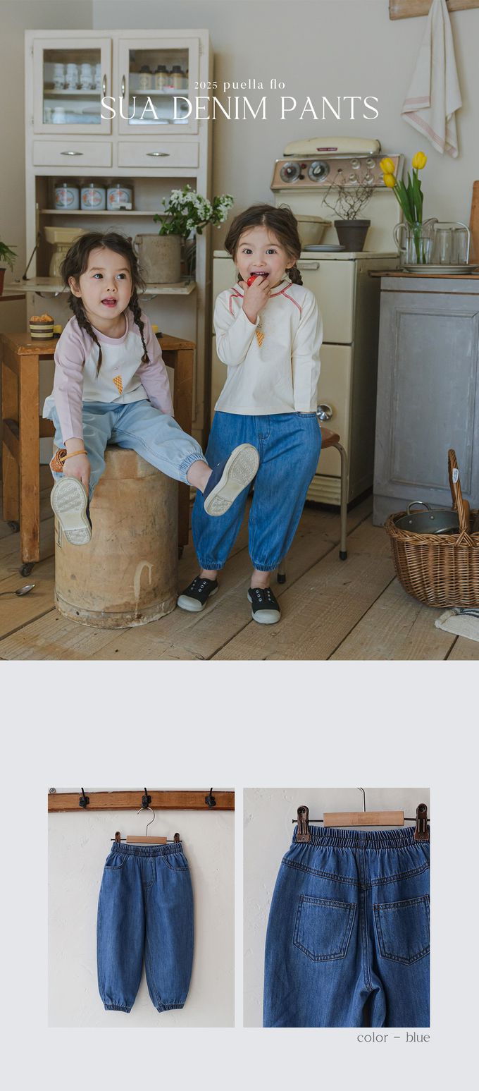 韓國 Puellaflo - 鬆緊腰丹寧縮口長褲