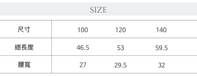 2. 平均尺寸表乃參考平均值制定,每位孩童成長速度略有不同,請參考孩子實際體型、現有衣物尺寸等實際測量結果進行選購。