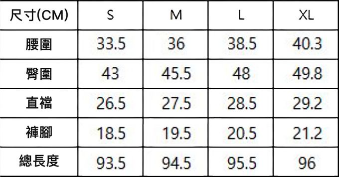 1. 尺寸表單位皆為公分(cm),實際尺寸會因布料彈性、水洗、測量起迄點等因素略有誤差。
