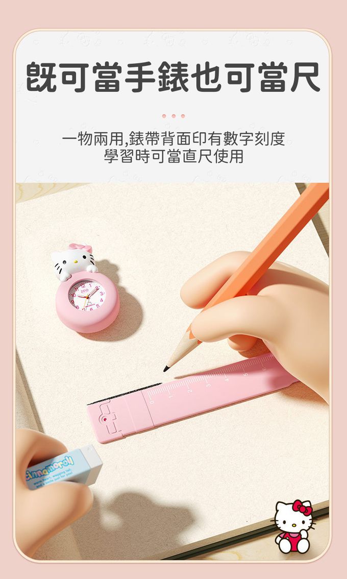 超人氣卡通 - 日本機芯防水夜光兩用兒童拍拍錶-卡通人物凱蒂貓-粉色 (32mm)