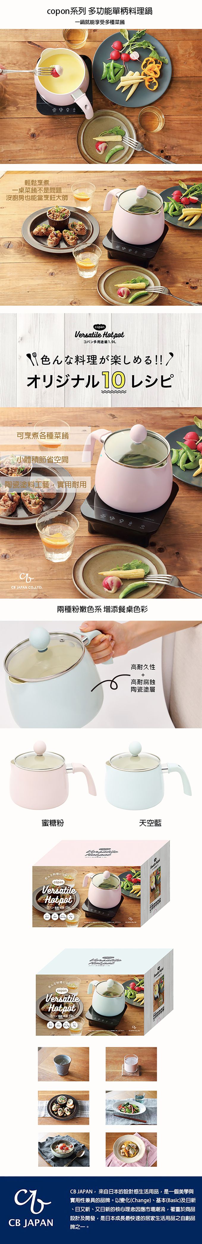 CB JAPAN,來自日本的設計感生活用品,是一個美學與實用性兼具的品牌。以變化(Change)、基本(Basic)及日新、日又新、又日新的核心理念因應市場潮流,著重於商品設計及開發,是日本成長最快速的居家生活用品之自創品牌之一。