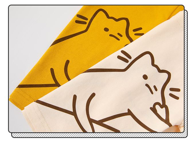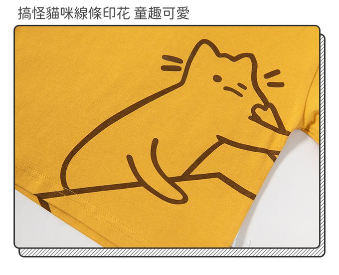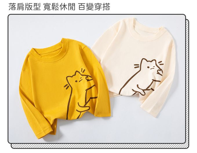 純棉圓領薄長袖上衣-貓咪玩耍-黃色
