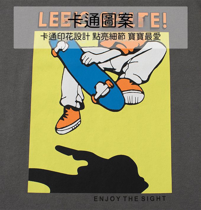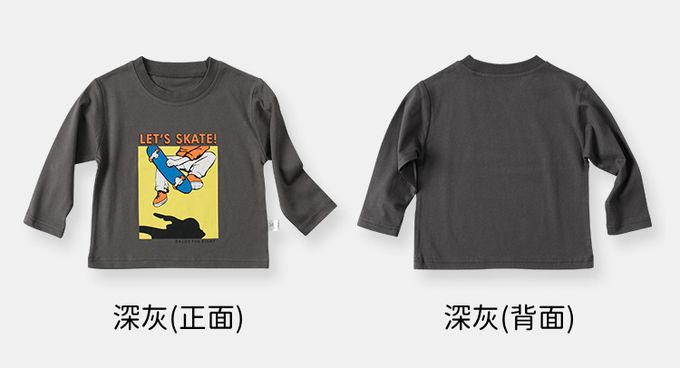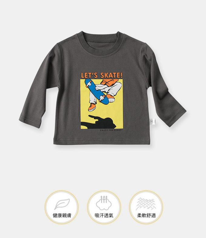 純棉圓領薄長袖上衣-滑板運動-深灰