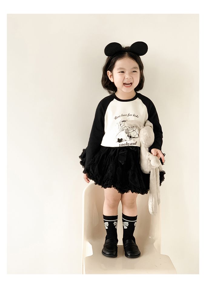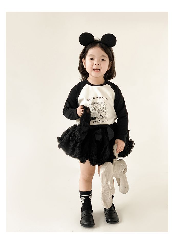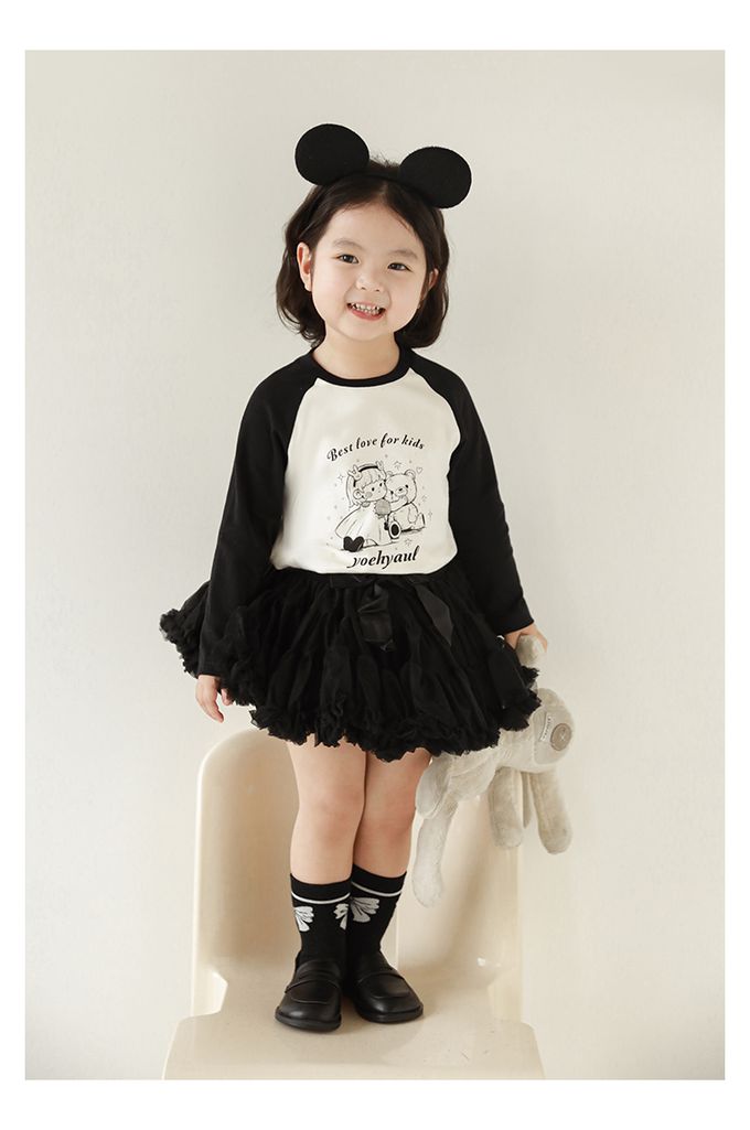 圓領撞色長袖上衣-娃娃與娃娃-黑色