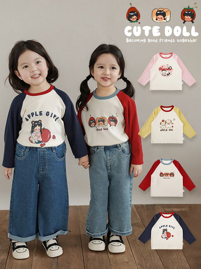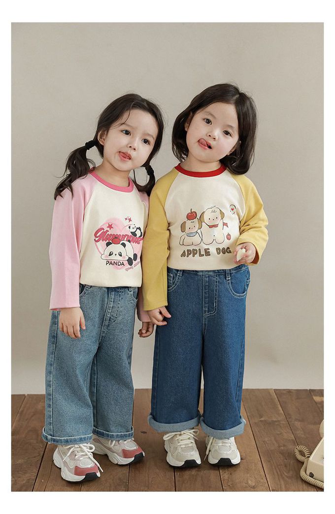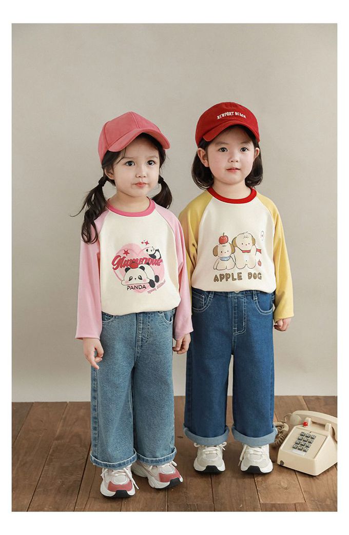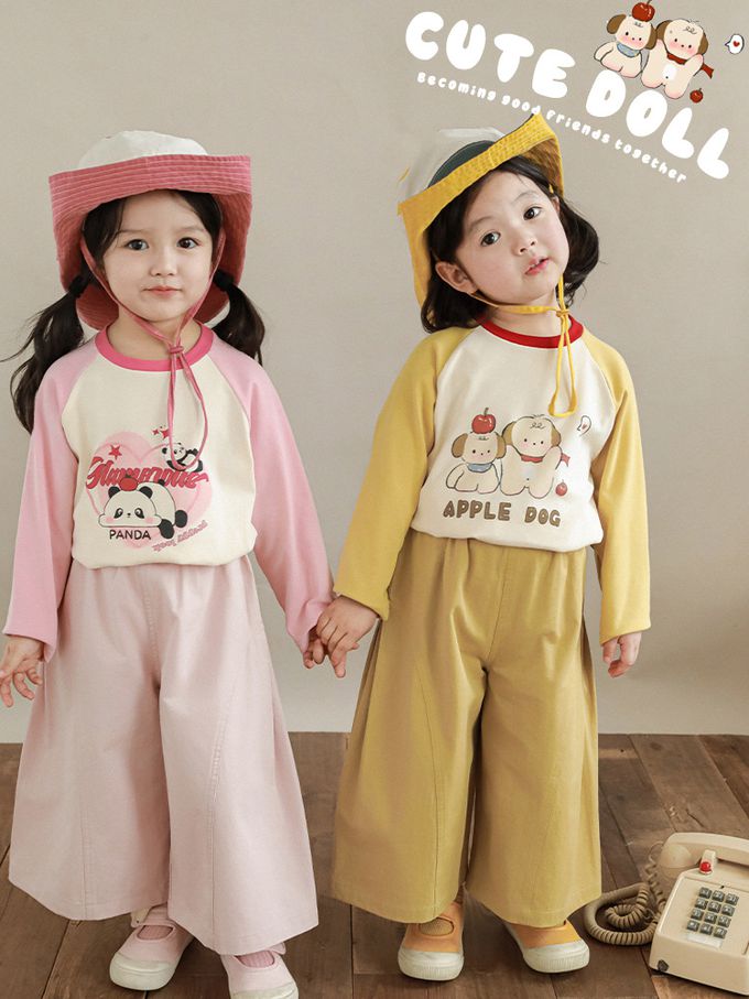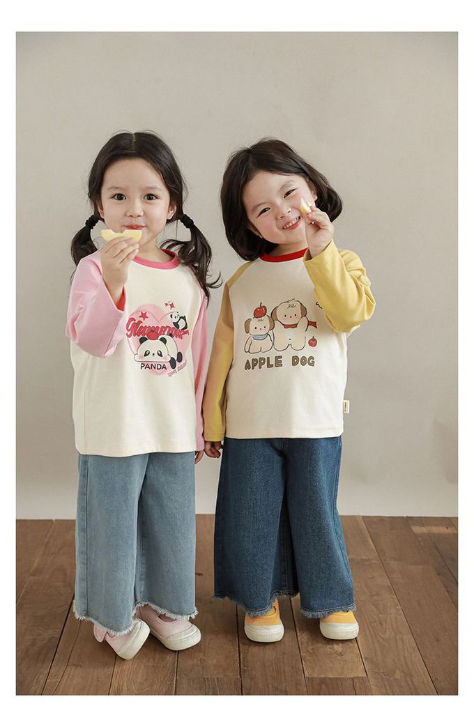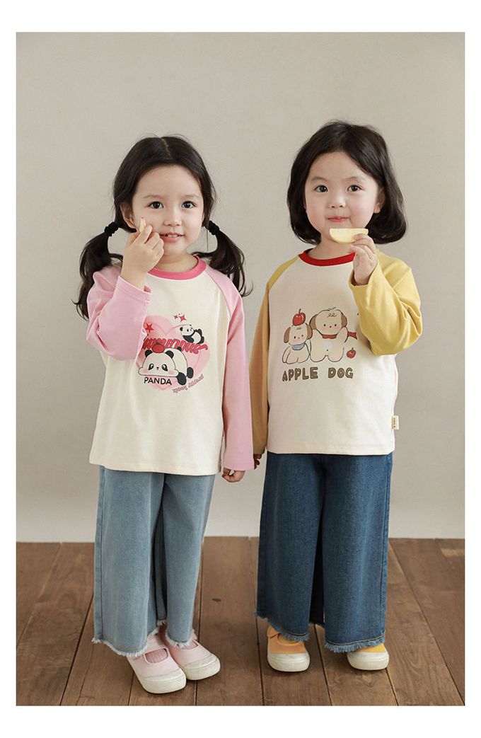 圓領撞色長袖上衣-萌萌熊貓-粉色