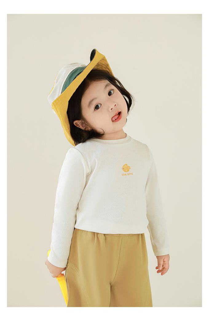 圓領百搭長袖上衣-小黃鳥-白色