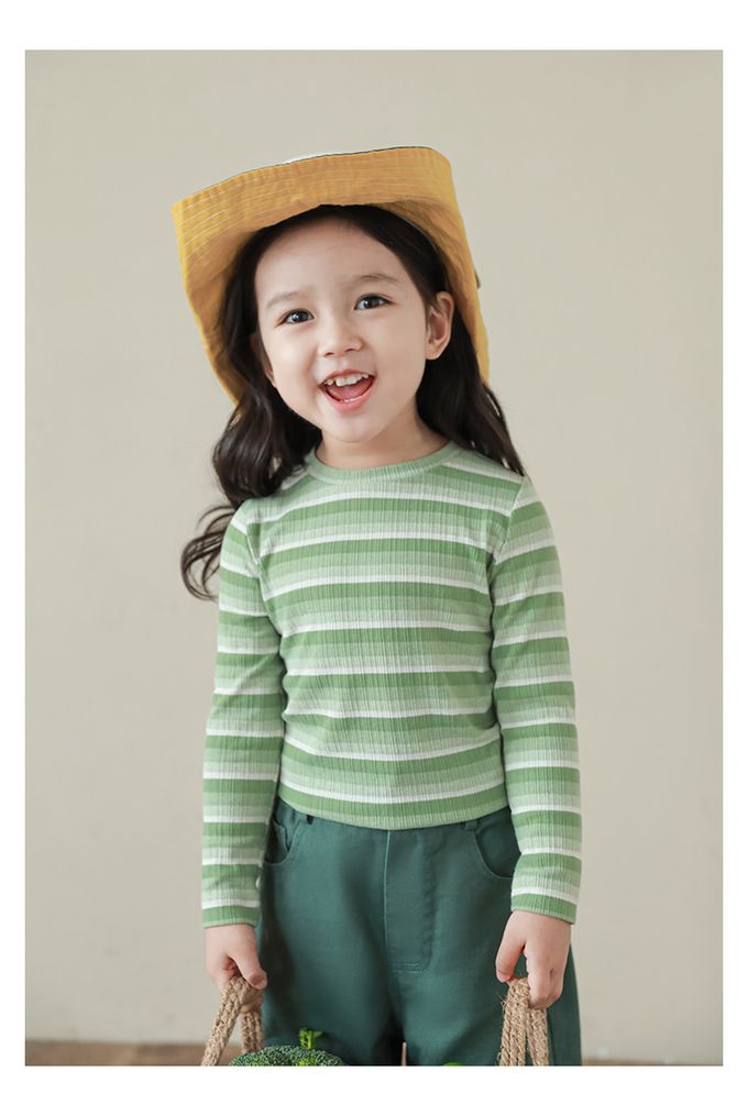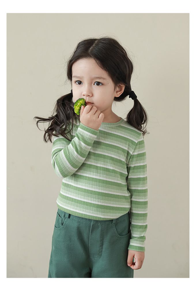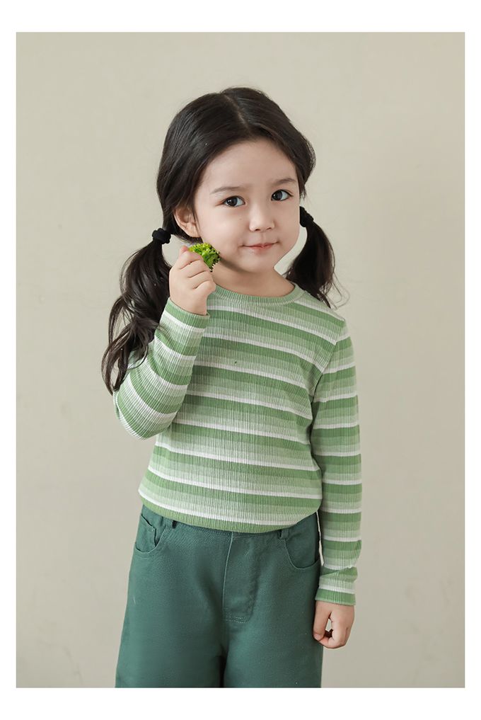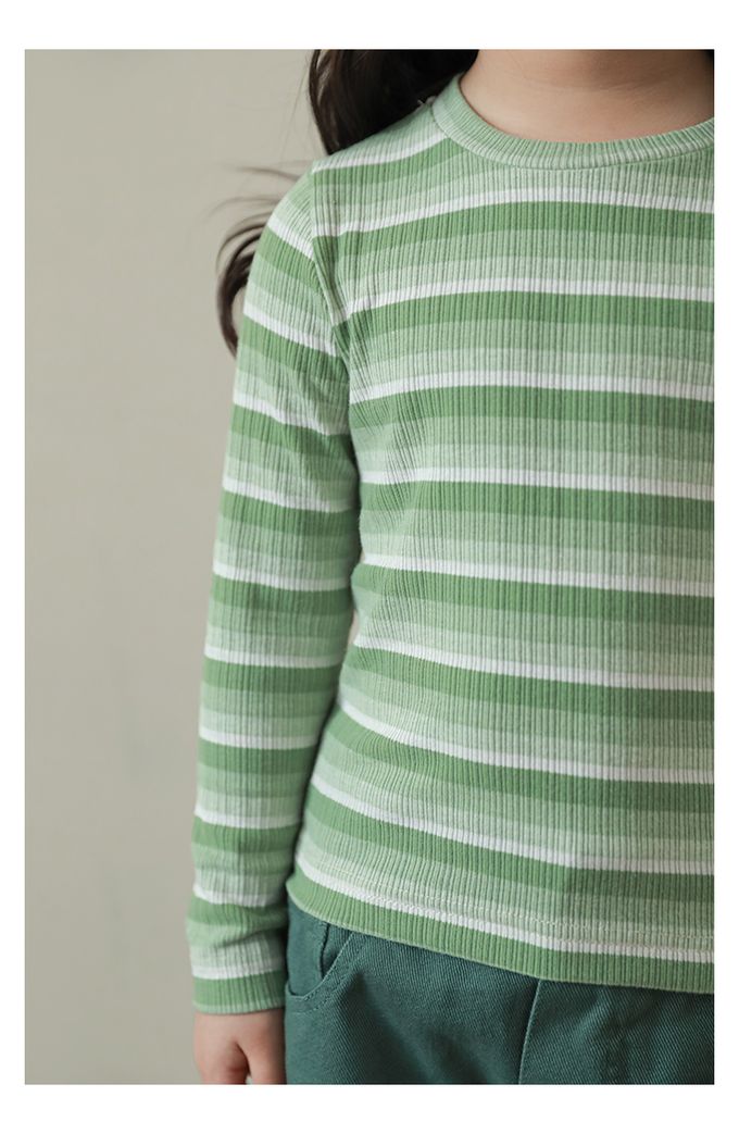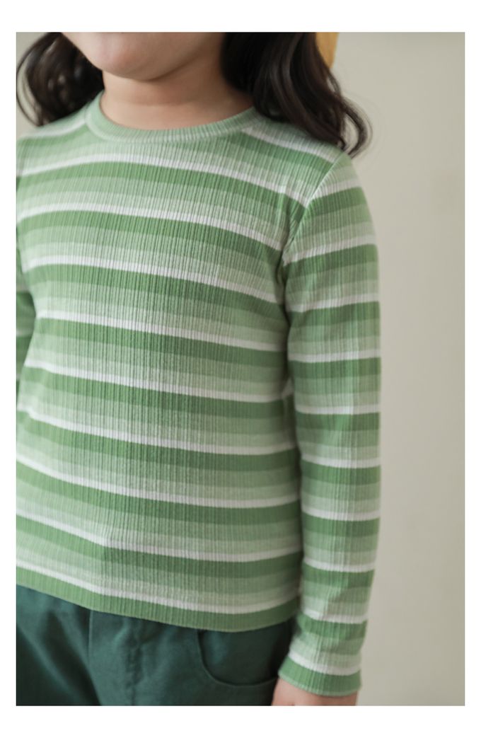 圓領長袖上衣-漸層條紋-綠色