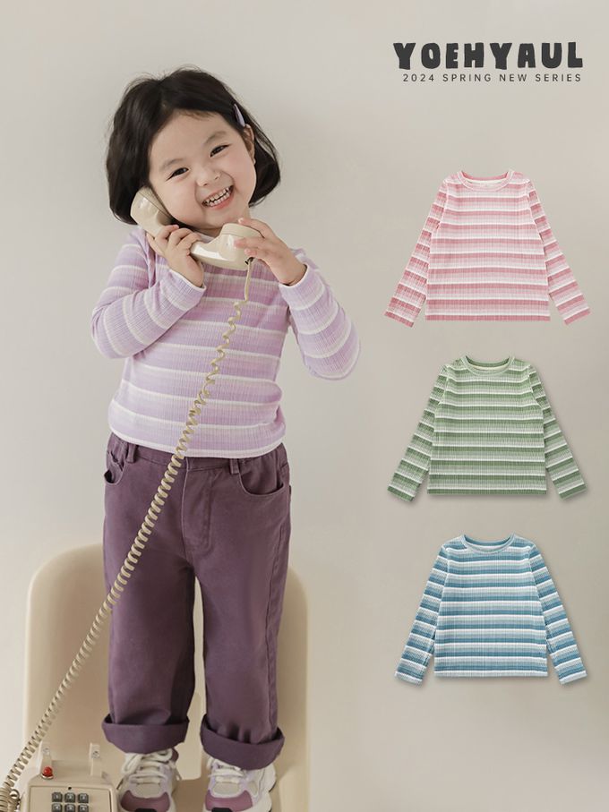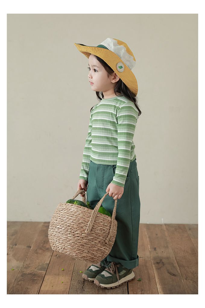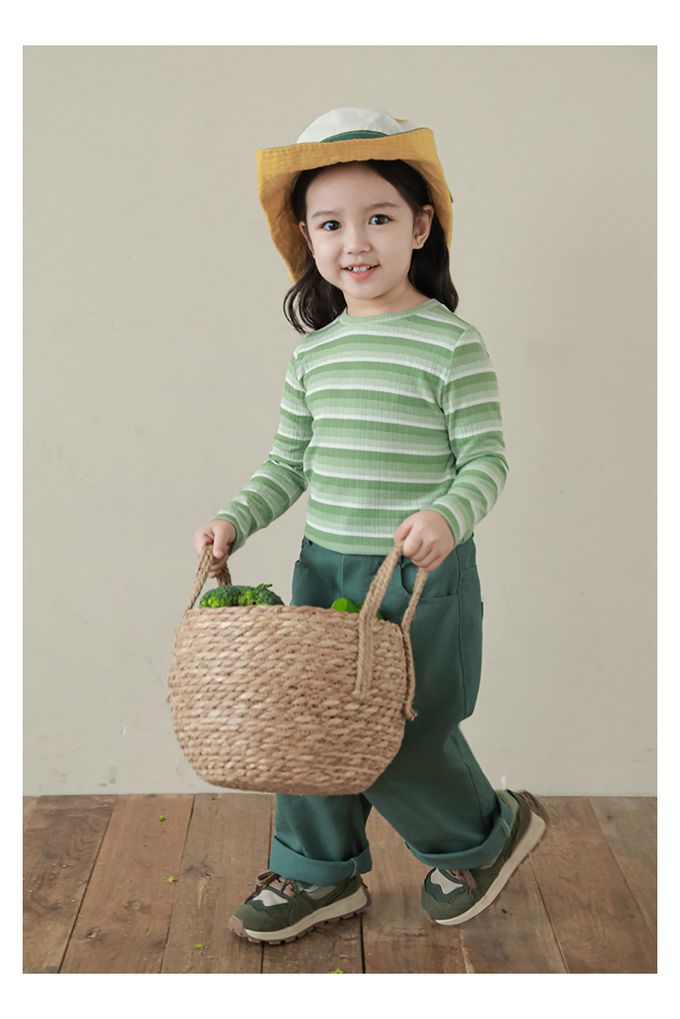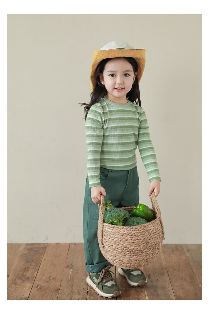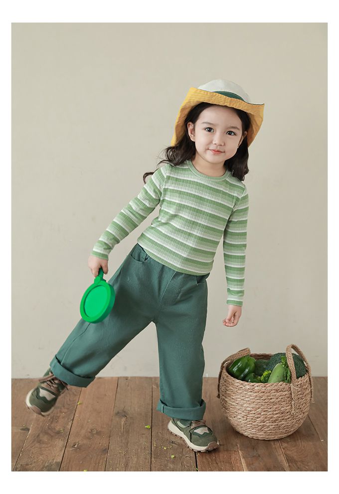圓領長袖上衣-漸層條紋-綠色