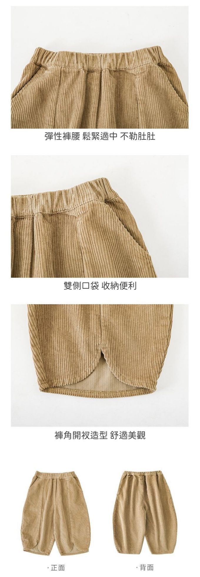 復古燈芯絨花苞八分褲-設計褲腳-卡其色