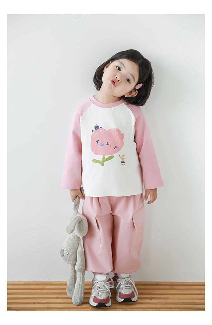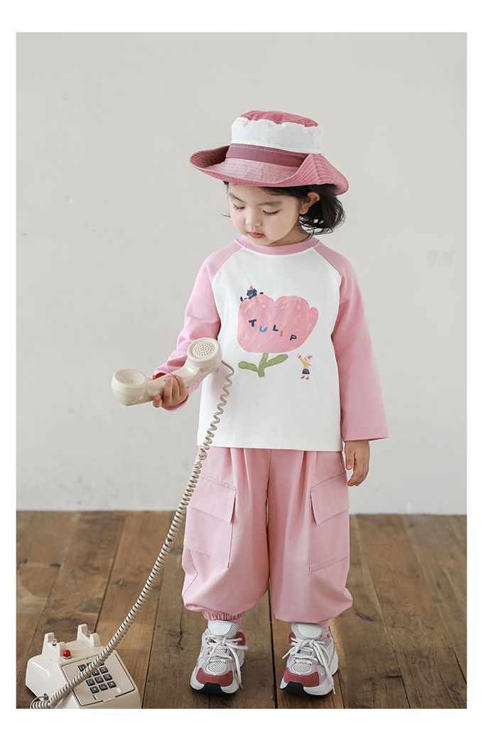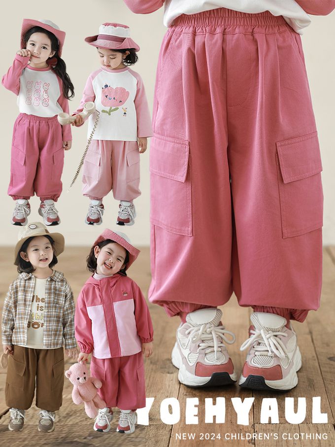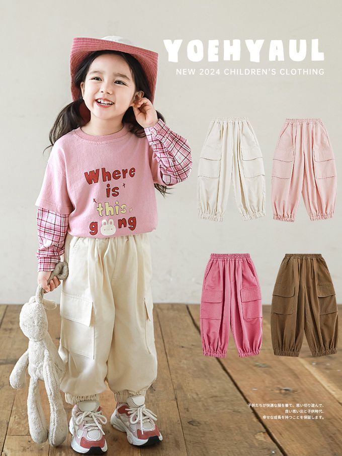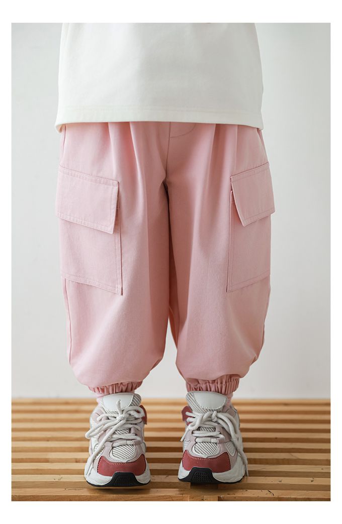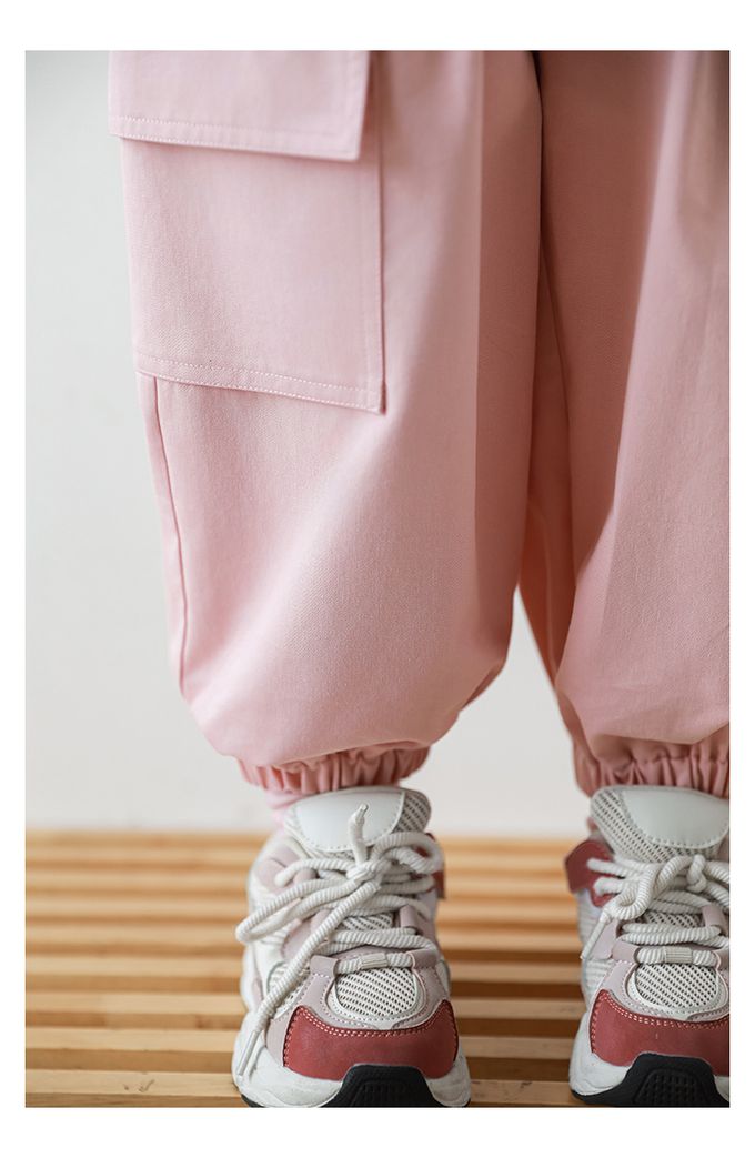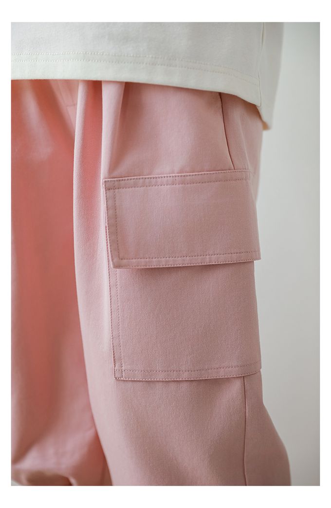 腰鬆緊休閒束口長褲-大口袋-粉色