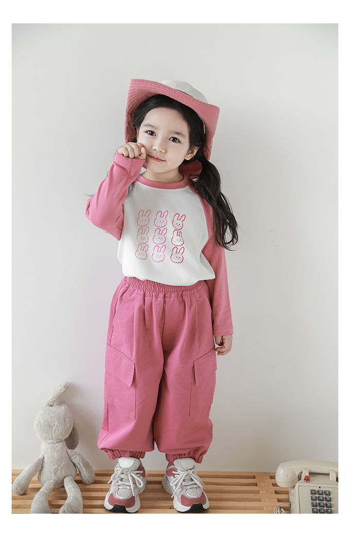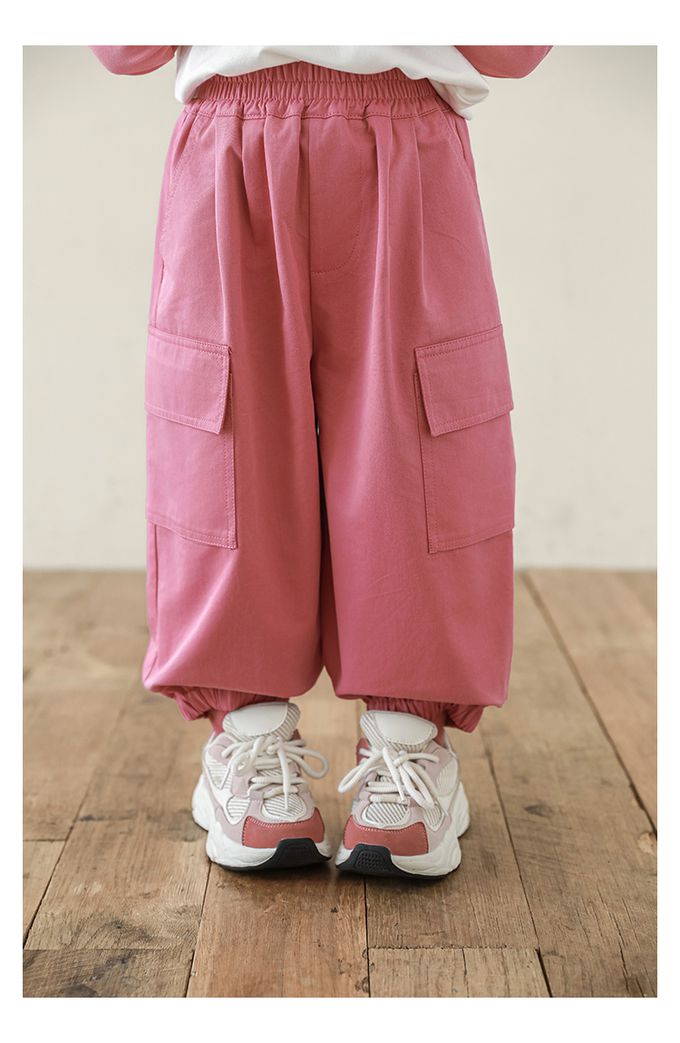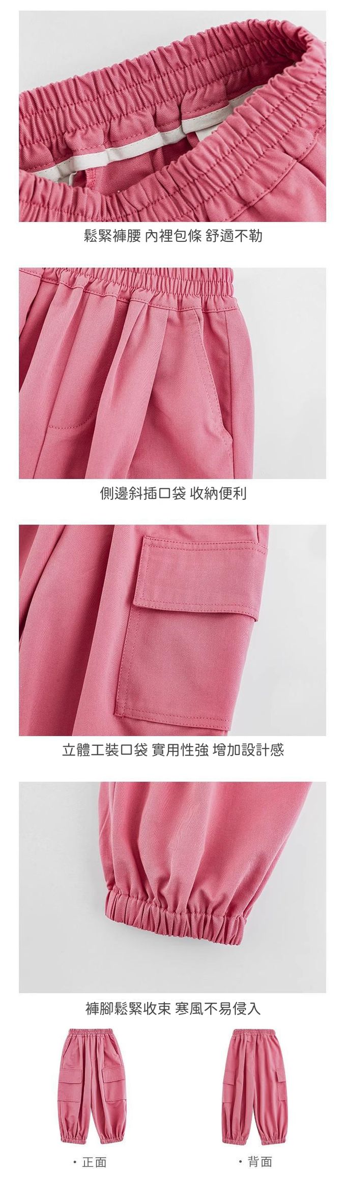 腰鬆緊休閒束口長褲-大口袋-玫粉色