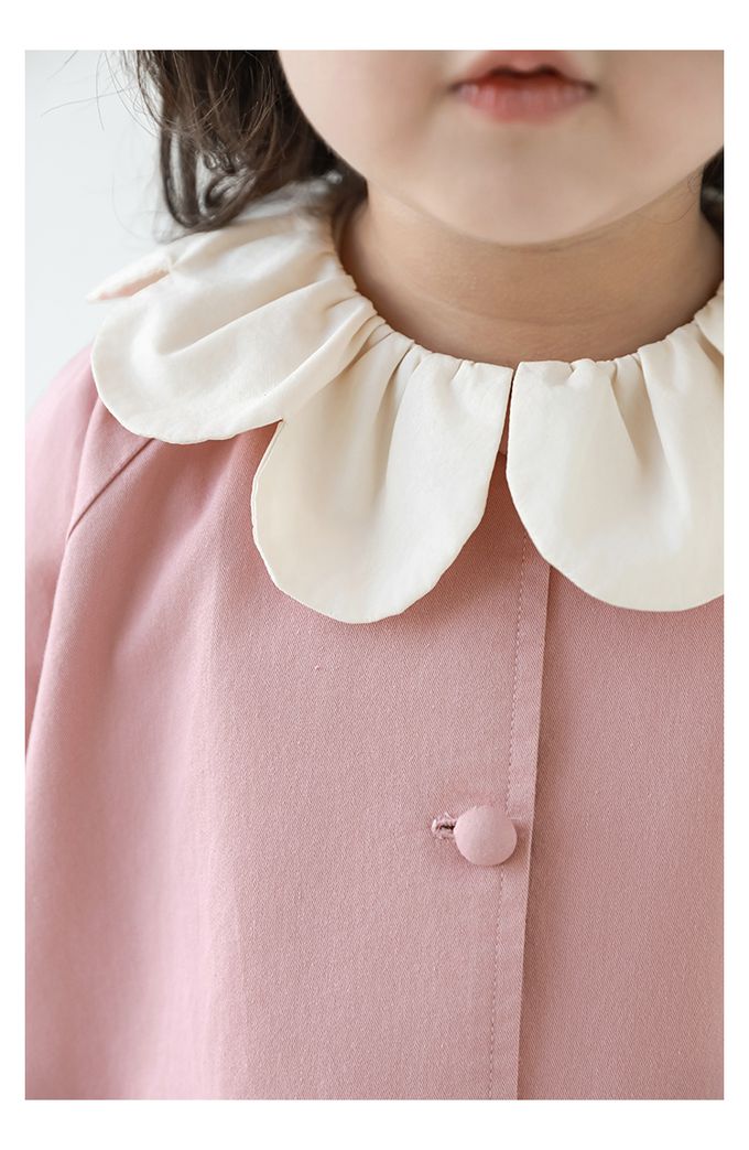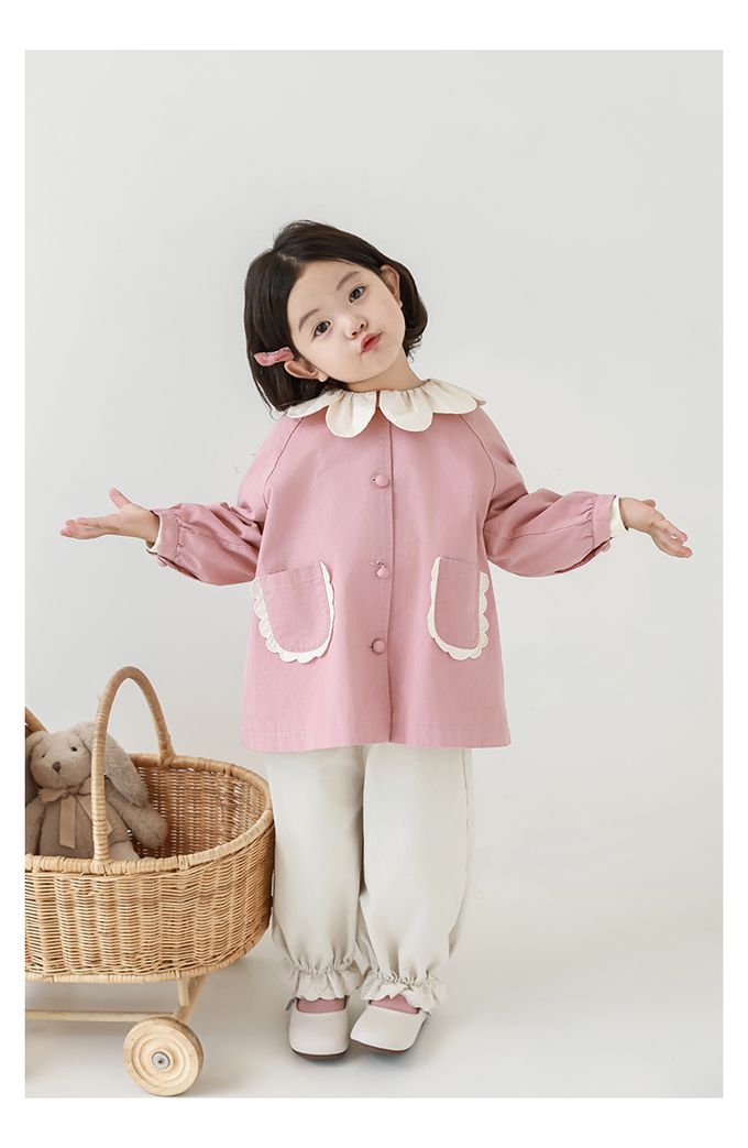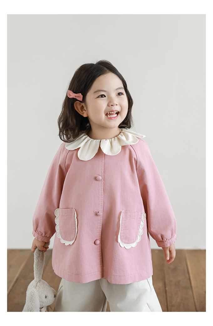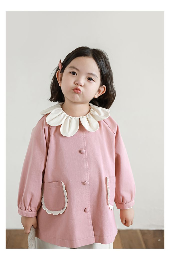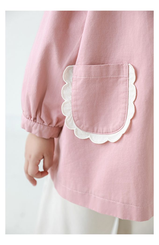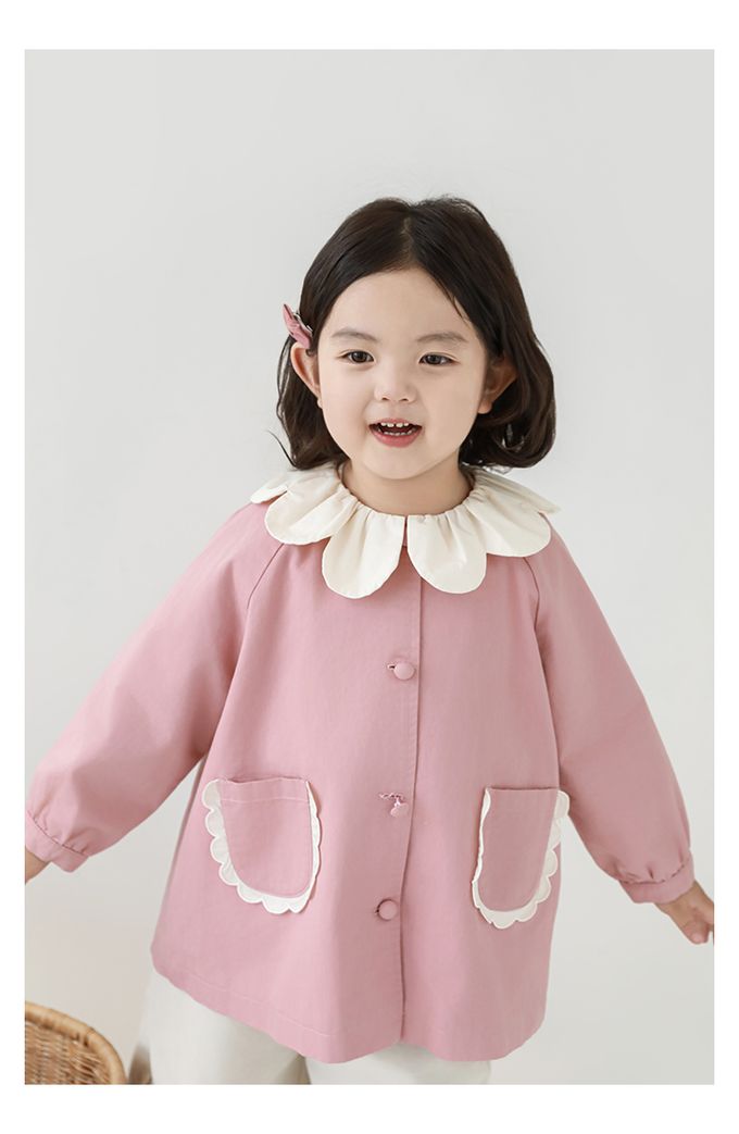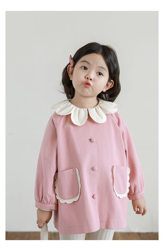 花瓣翻領+精緻繡花口袋,甜美可愛