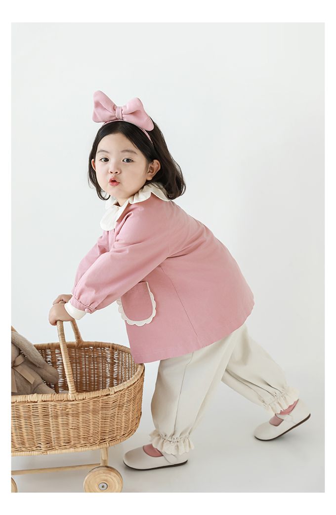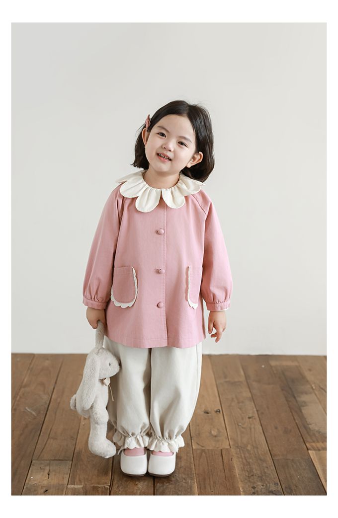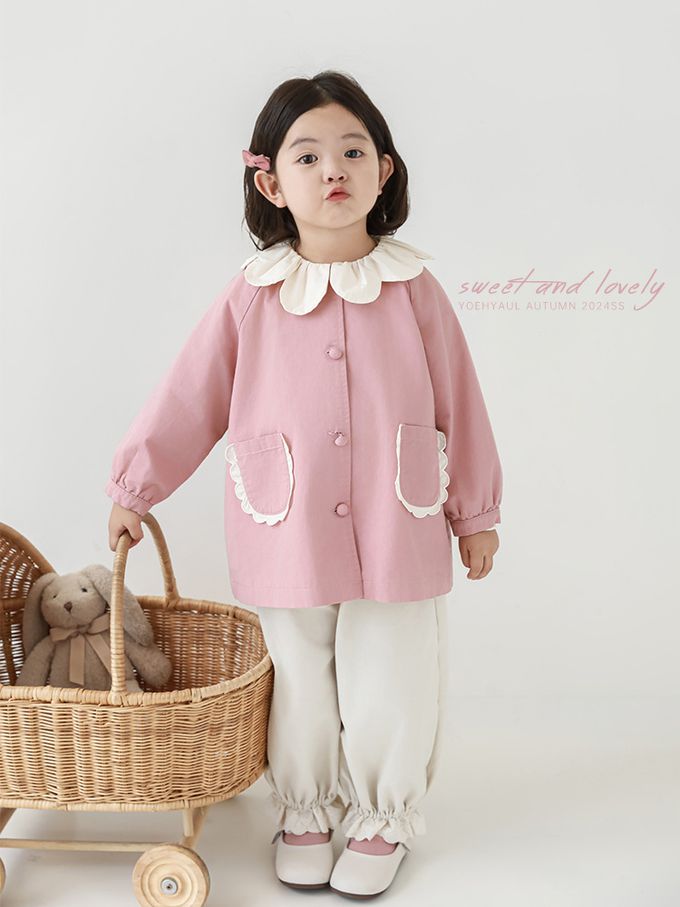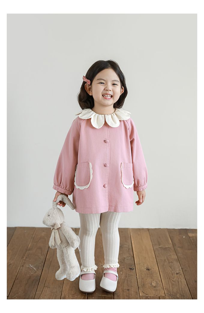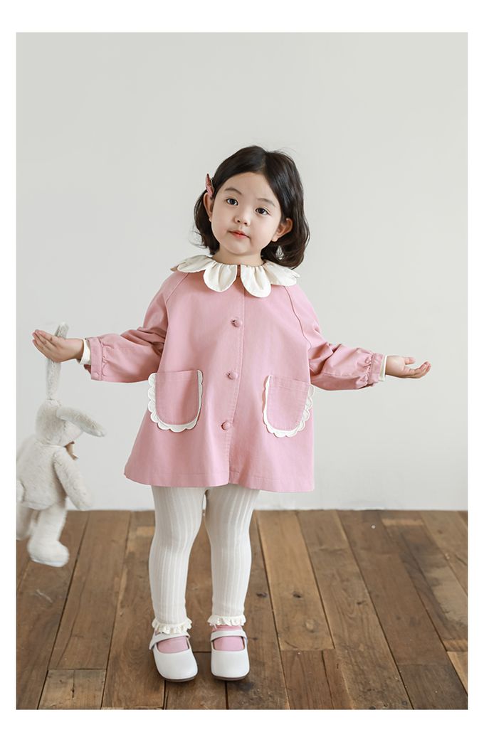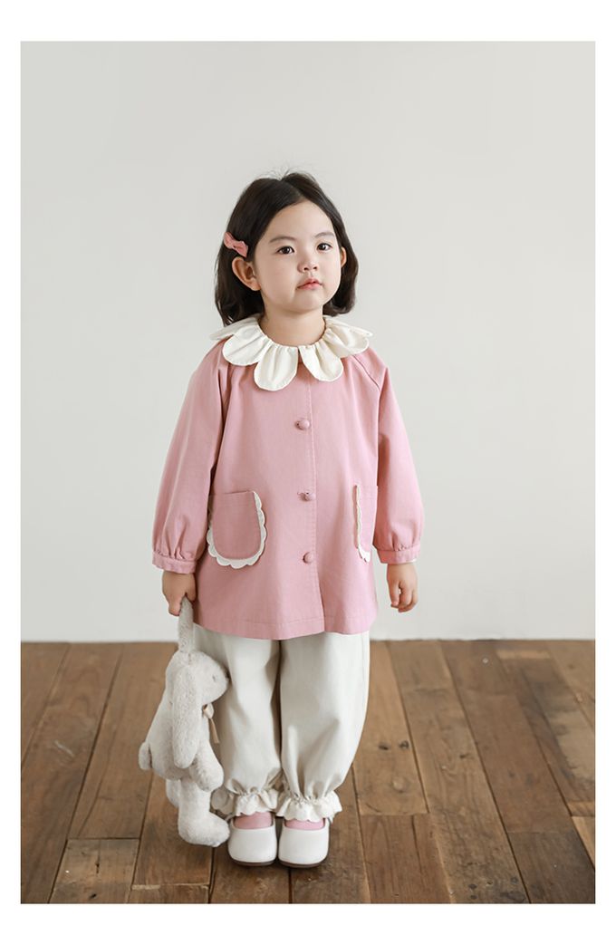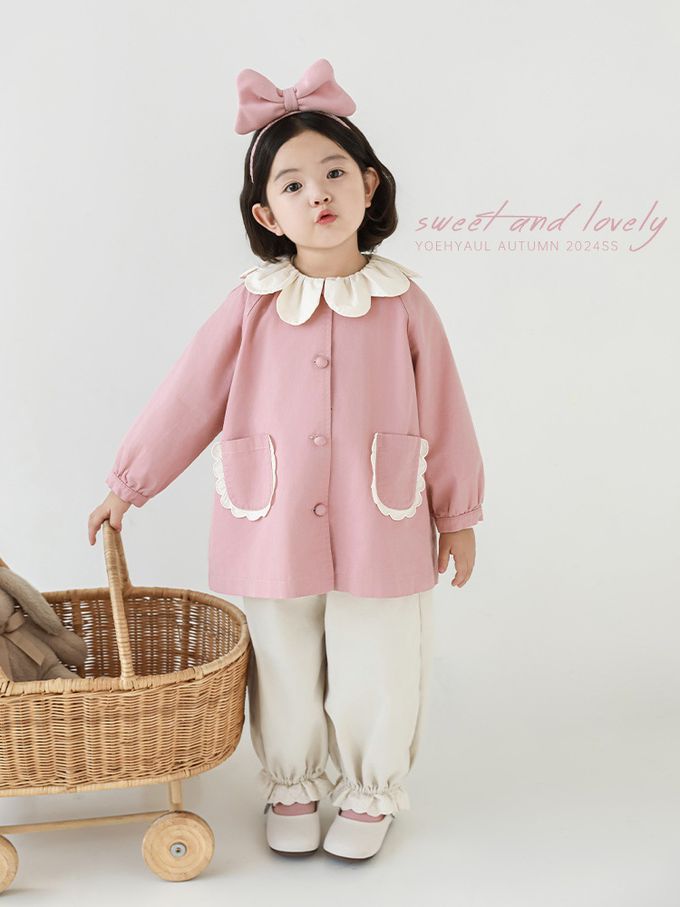 花瓣翻領+精緻繡花口袋,甜美可愛