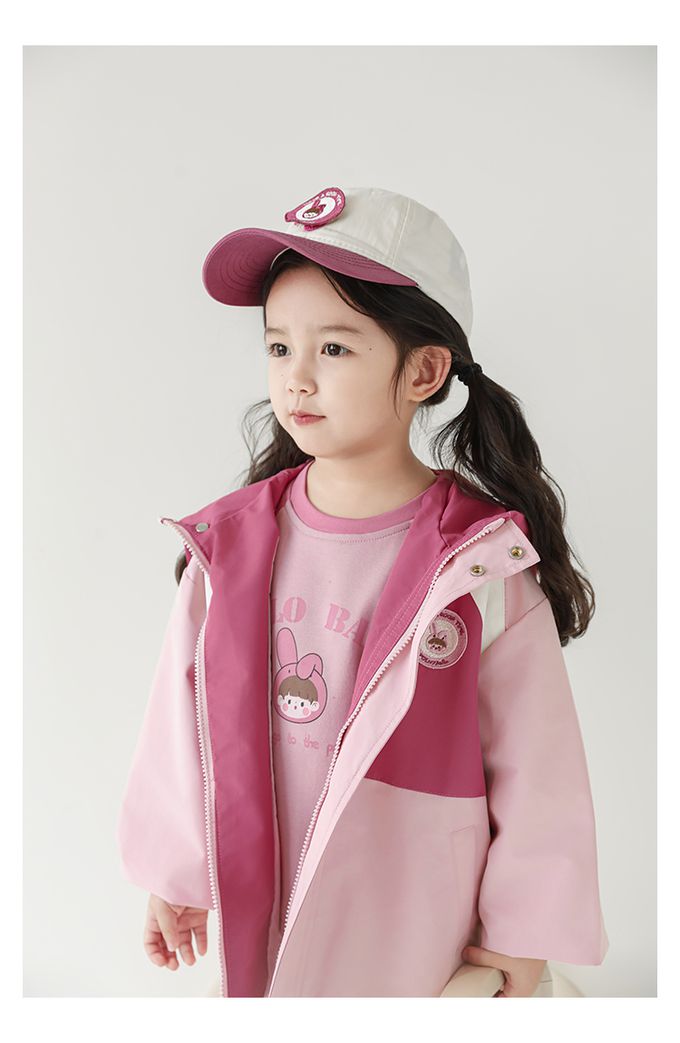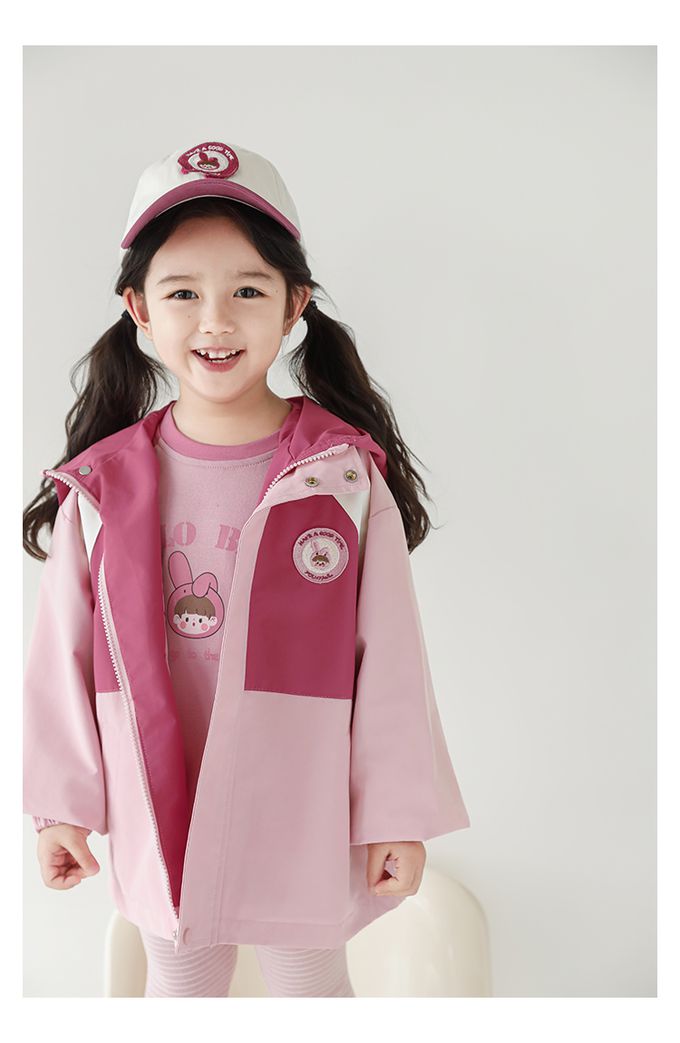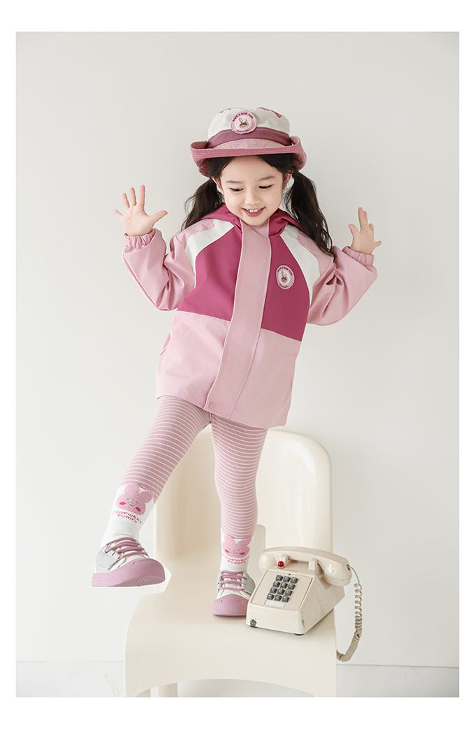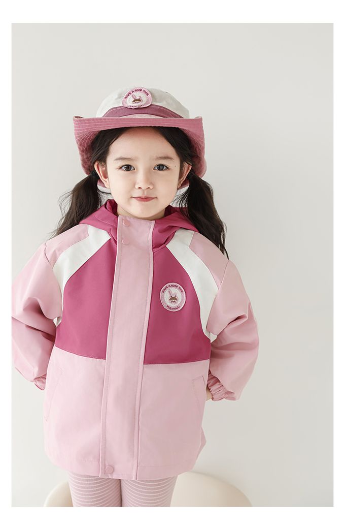 休閒連帽拼色防風外套-刺繡徽章-粉色