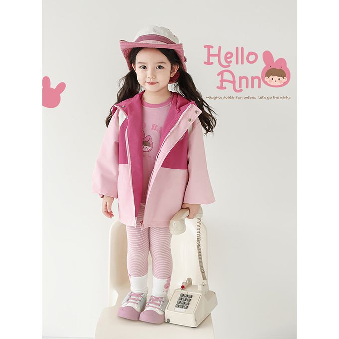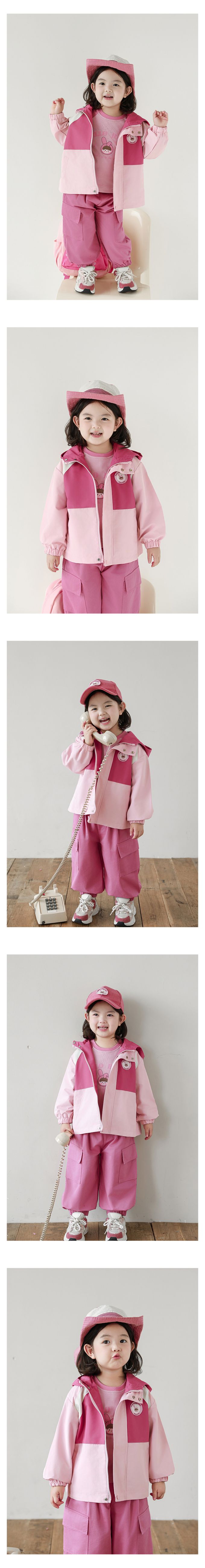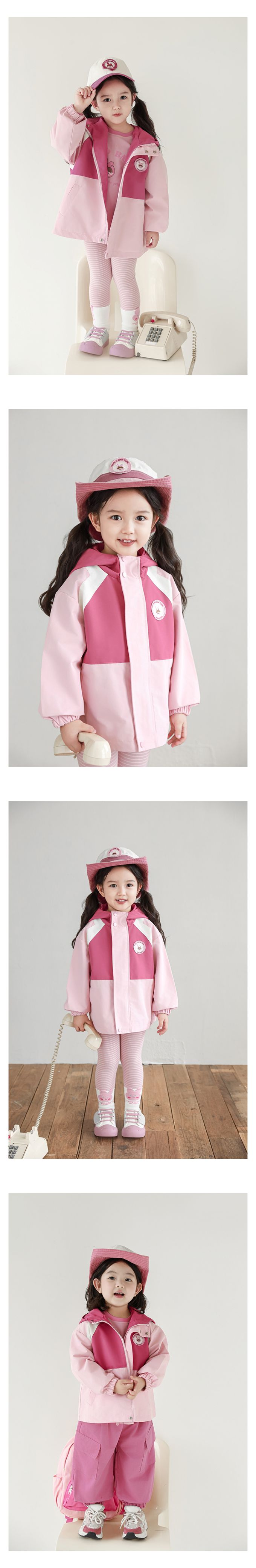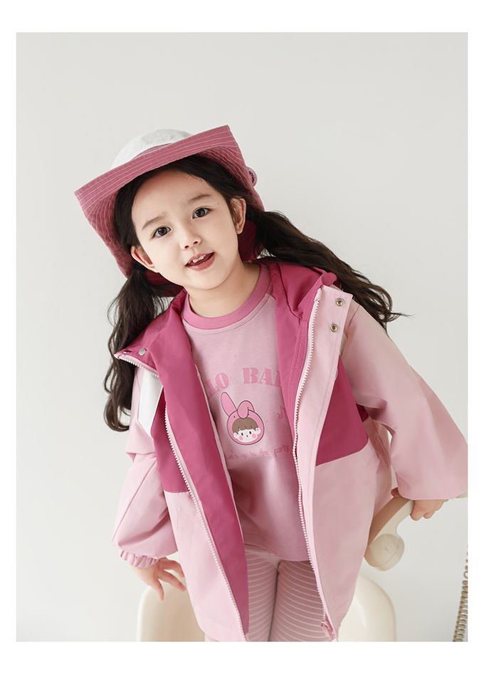 休閒連帽拼色防風外套-刺繡徽章-粉色