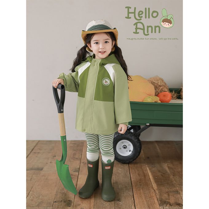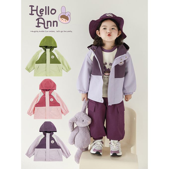品名:休閒連帽拼色防風外套