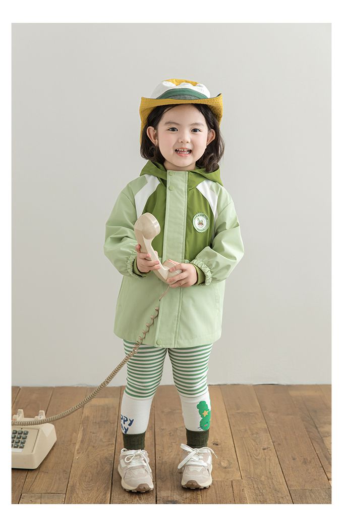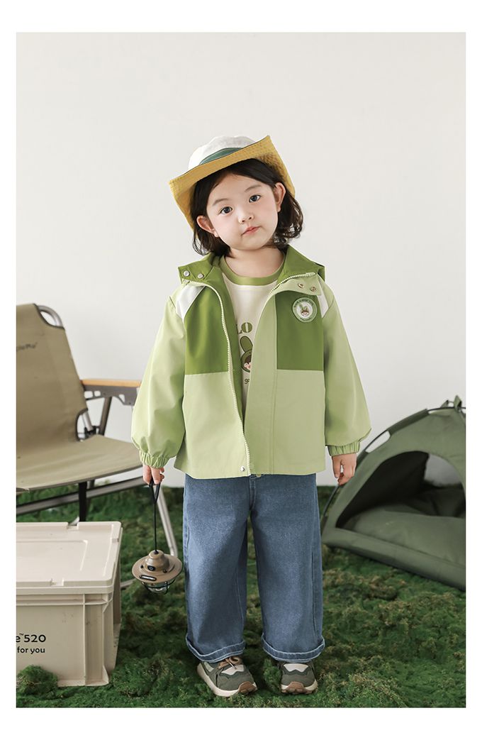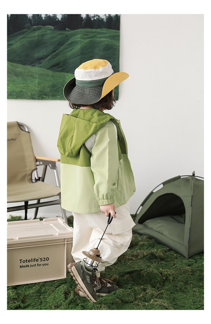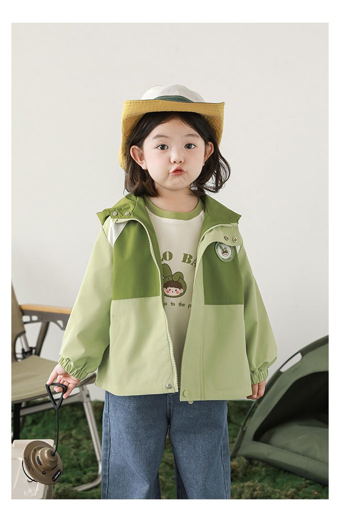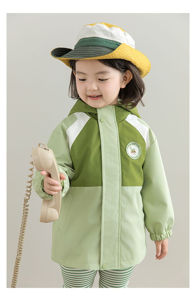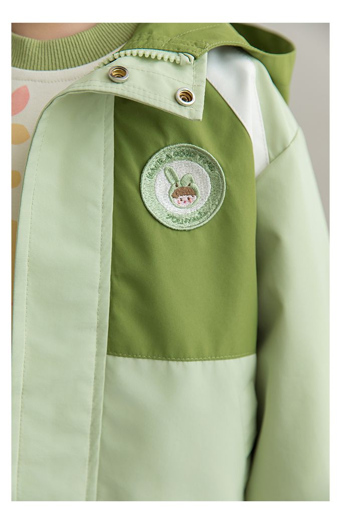 休閒連帽拼色防風外套-刺繡徽章-綠色