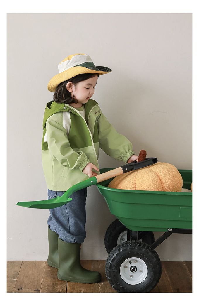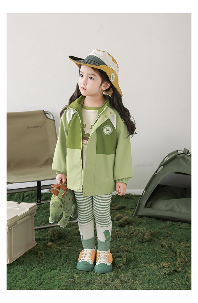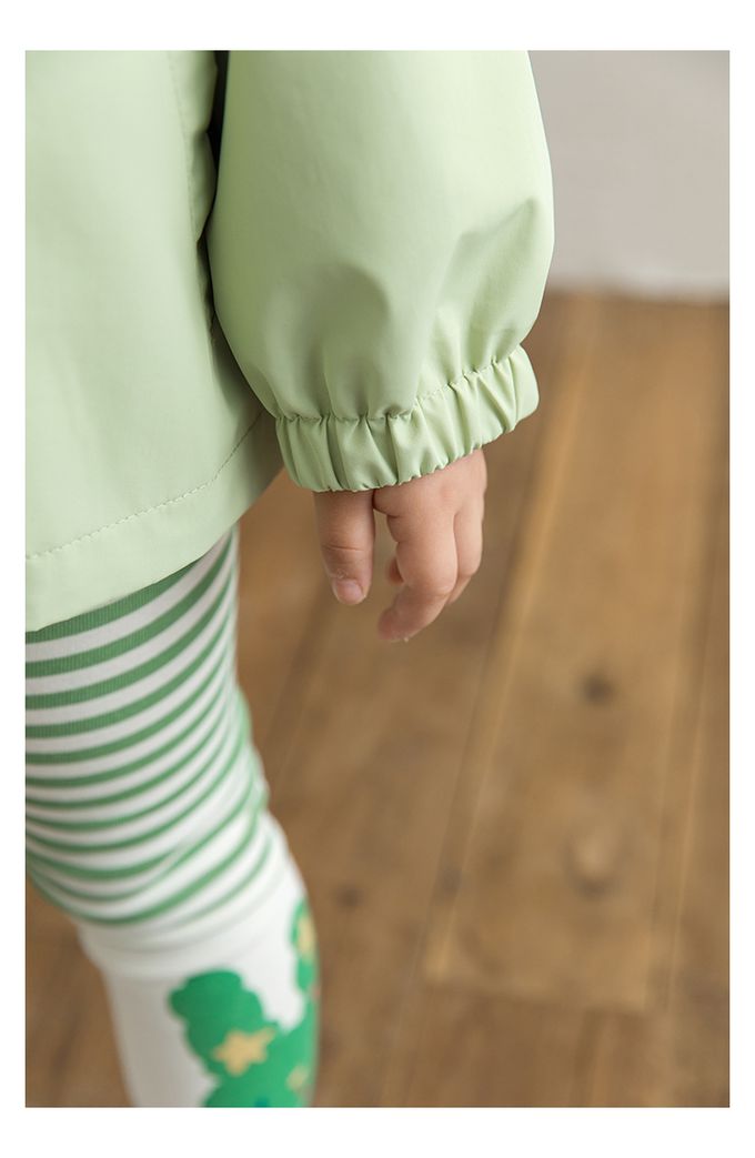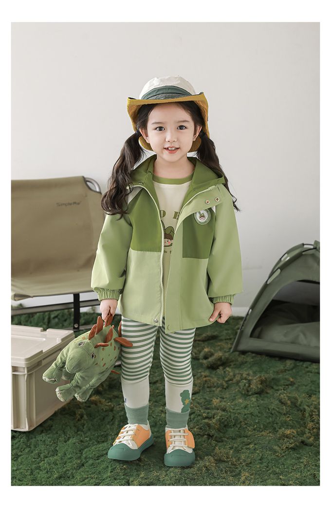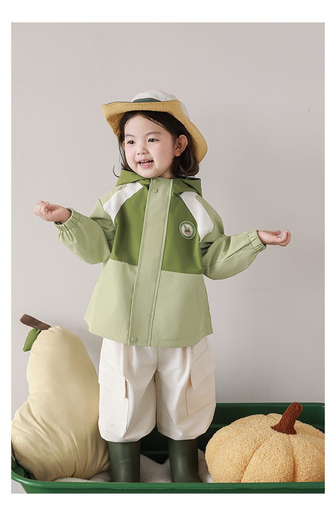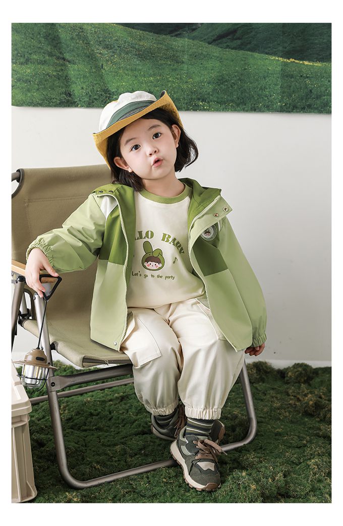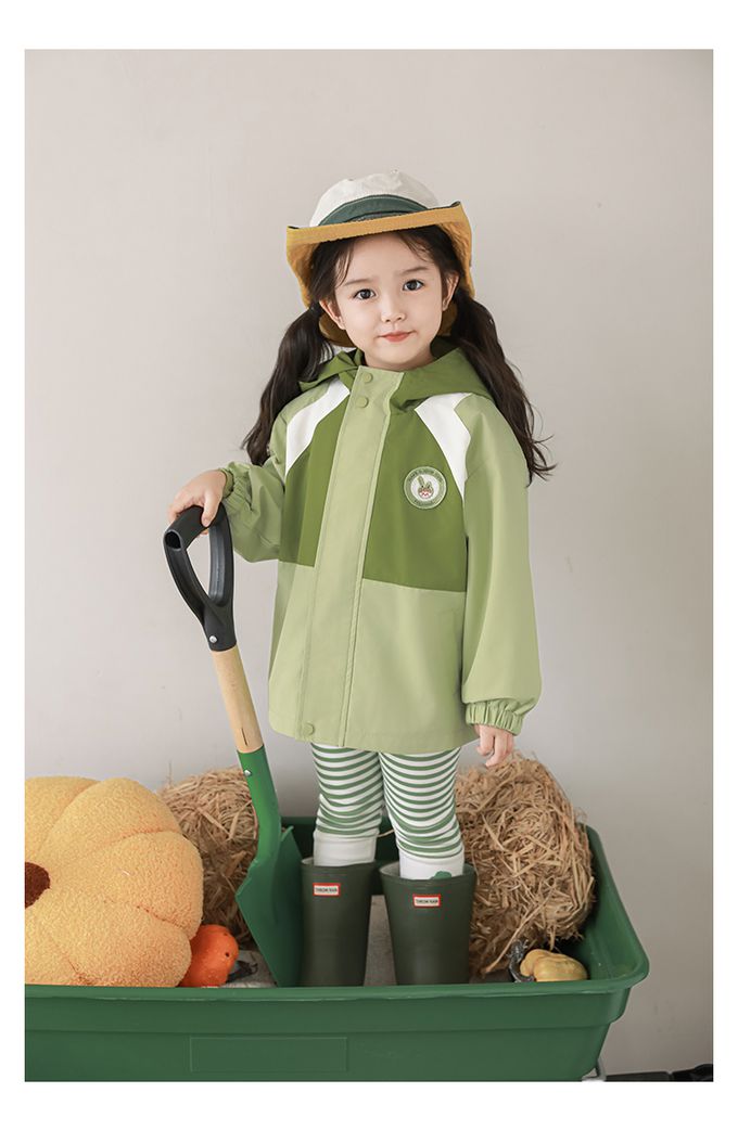 休閒連帽拼色防風外套-刺繡徽章-綠色