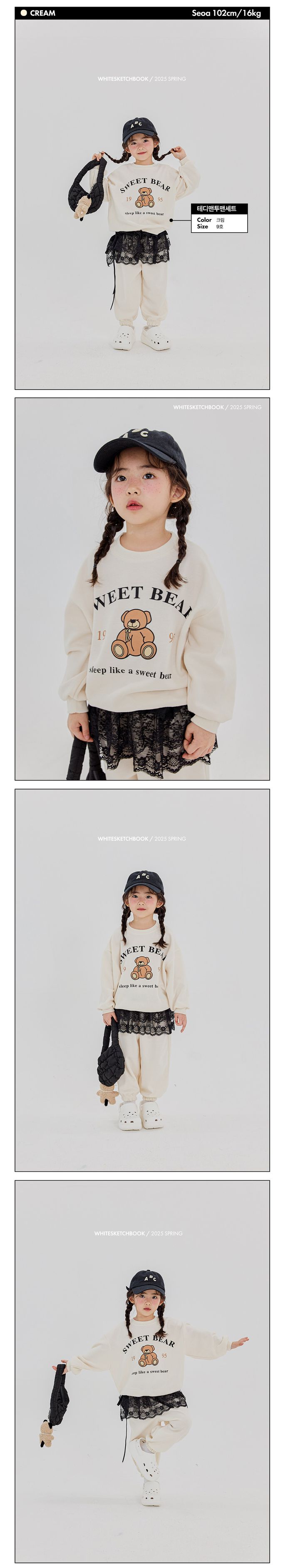 韓國 W.S.B. - 大熊圖案長袖套裝-米