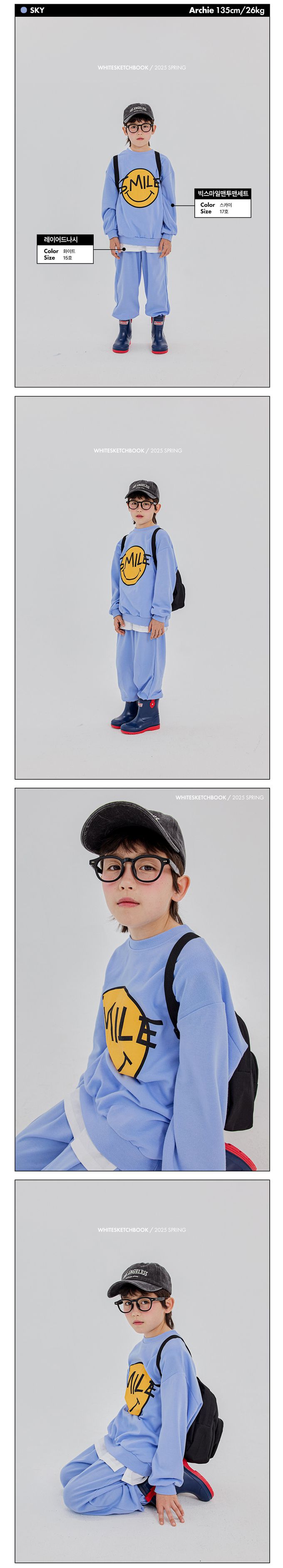 韓國 W.S.B. - 大SMILE笑臉長袖套裝-天藍