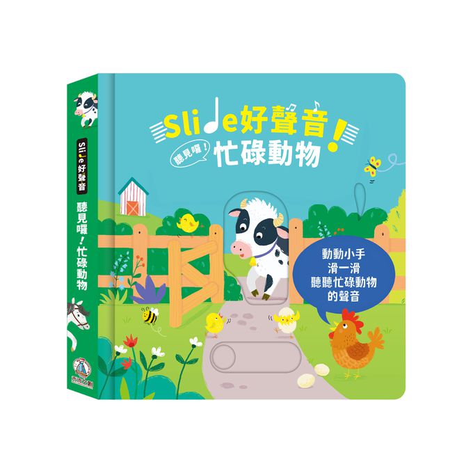 在【Slide好聲音!聽見囉!】系列中,每一個跨頁都有滑動的音效機關,當孩子滑動機關的時候,就可以切換兩種不同動物的聲音,有溫柔的乳牛媽媽、蹦蹦跳跳的小乳牛、興奮的馬兒、七嘴八舌的土雞們、成群結隊的綿羊群、活潑好動的牧羊犬、早起出門的驢子、享受泥巴浴的小豬們。高音質的呈現,讓孩子迅速感知聲音變化,認識各種忙碌動物的聲音。