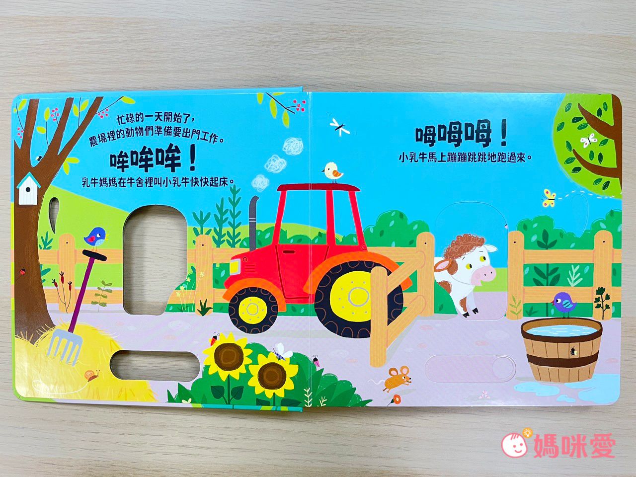 本系列的插圖使用鮮豔的紅、黃、綠等彩度較高的色彩,刺激嬰幼兒的視覺,插畫家描繪的動物和農莊景色簡單可愛,吸引孩子的注意力,讓大人小孩都愛不釋手!美麗的圖畫不僅能輔助視覺的刺激和學習,更讓孩子從小接受美好事物的薰陶,培養美感素養。