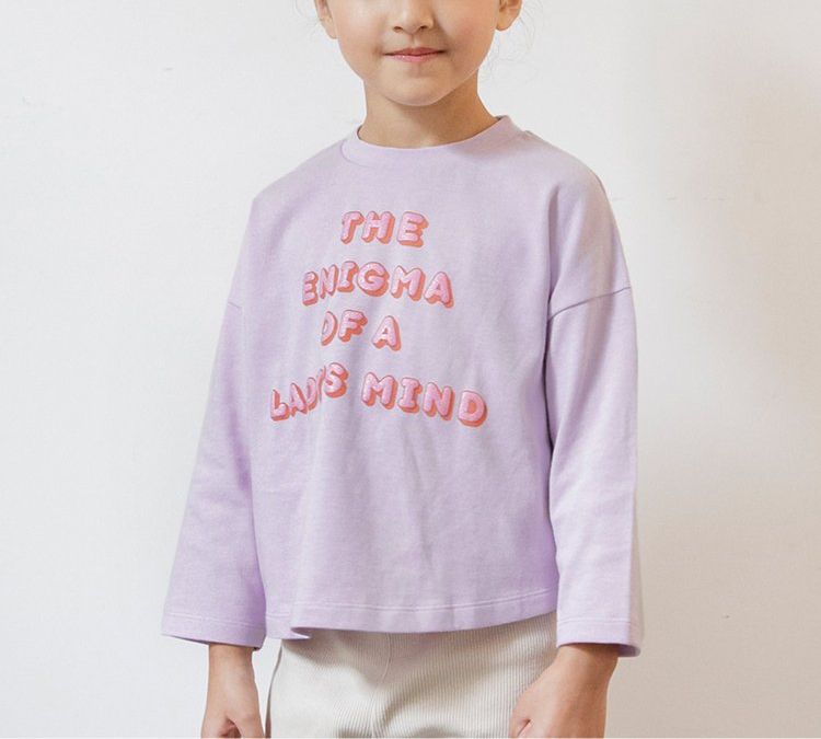 日本 BREEZE - 個性女孩印花薄長袖上衣-立體英文-粉紫
