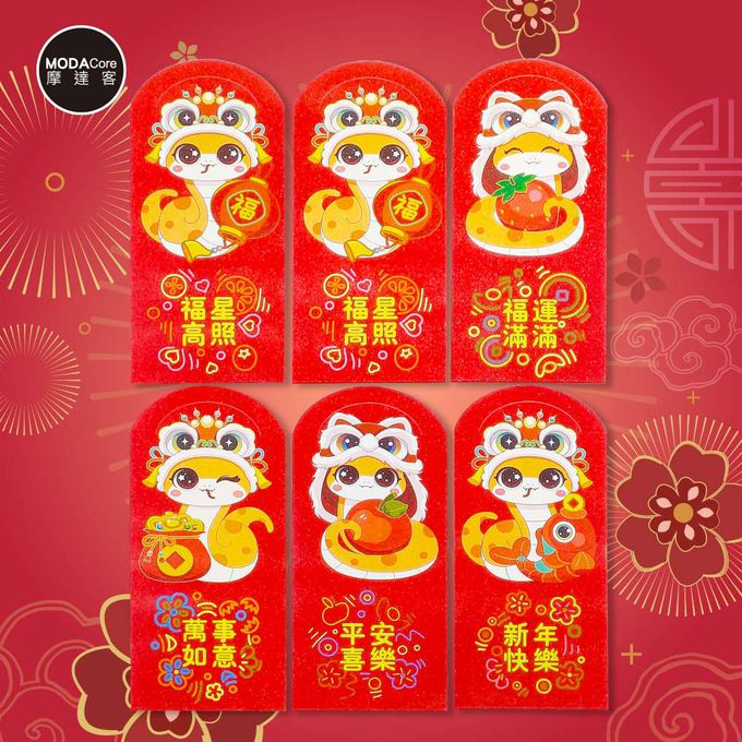 ◉春節開運招財◉霧面亮彩獅頭帽大眼蛇紅包袋套組(12入一組/6款2入)