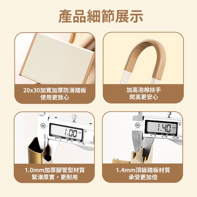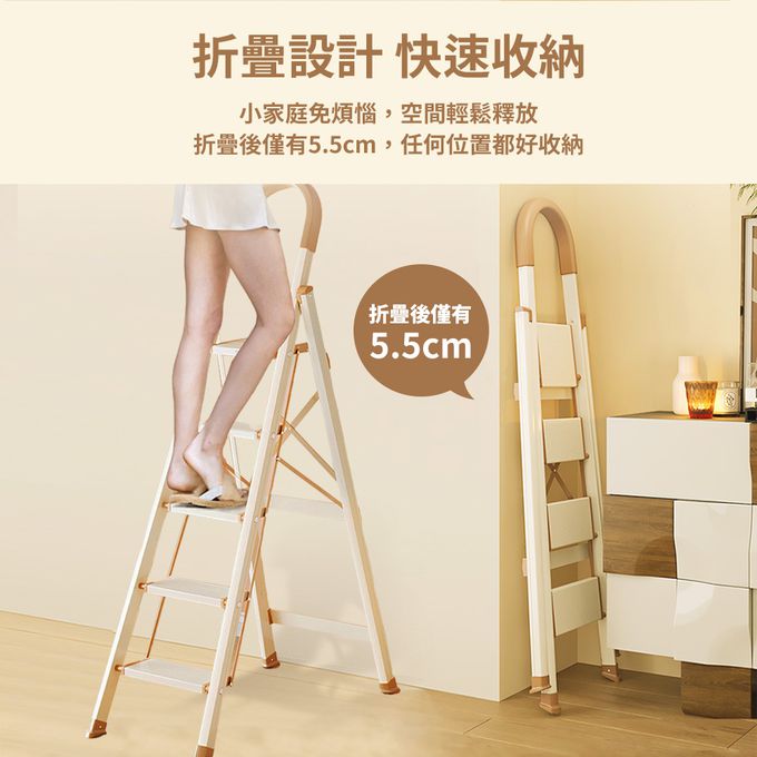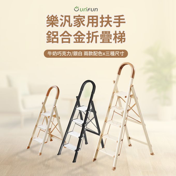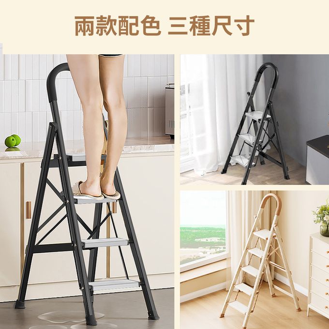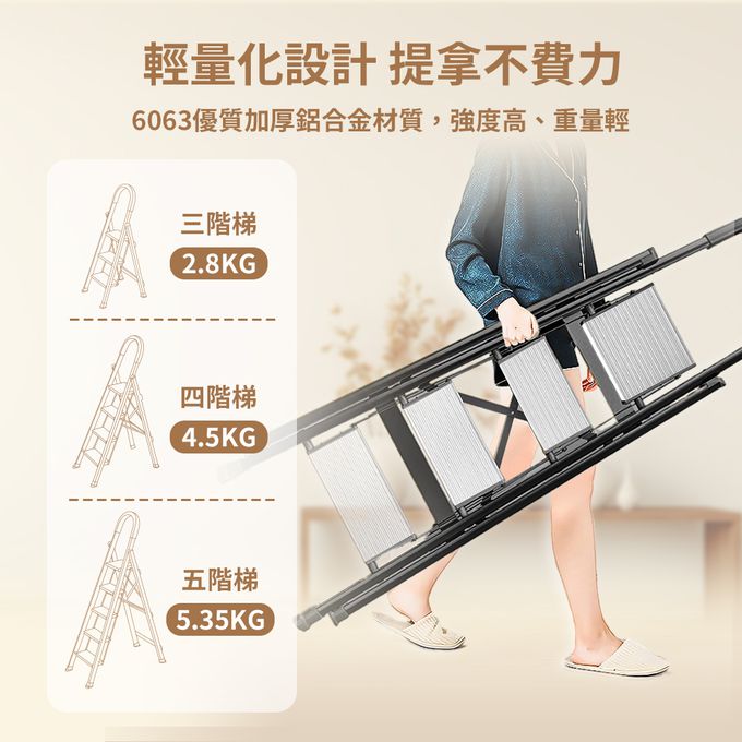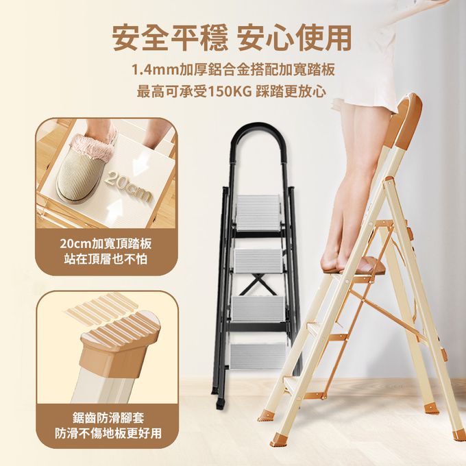 加厚鋁合金安全扶手折疊梯 A字梯 家用梯-三步梯/四步梯/五步梯-黑銀/牛奶巧克力