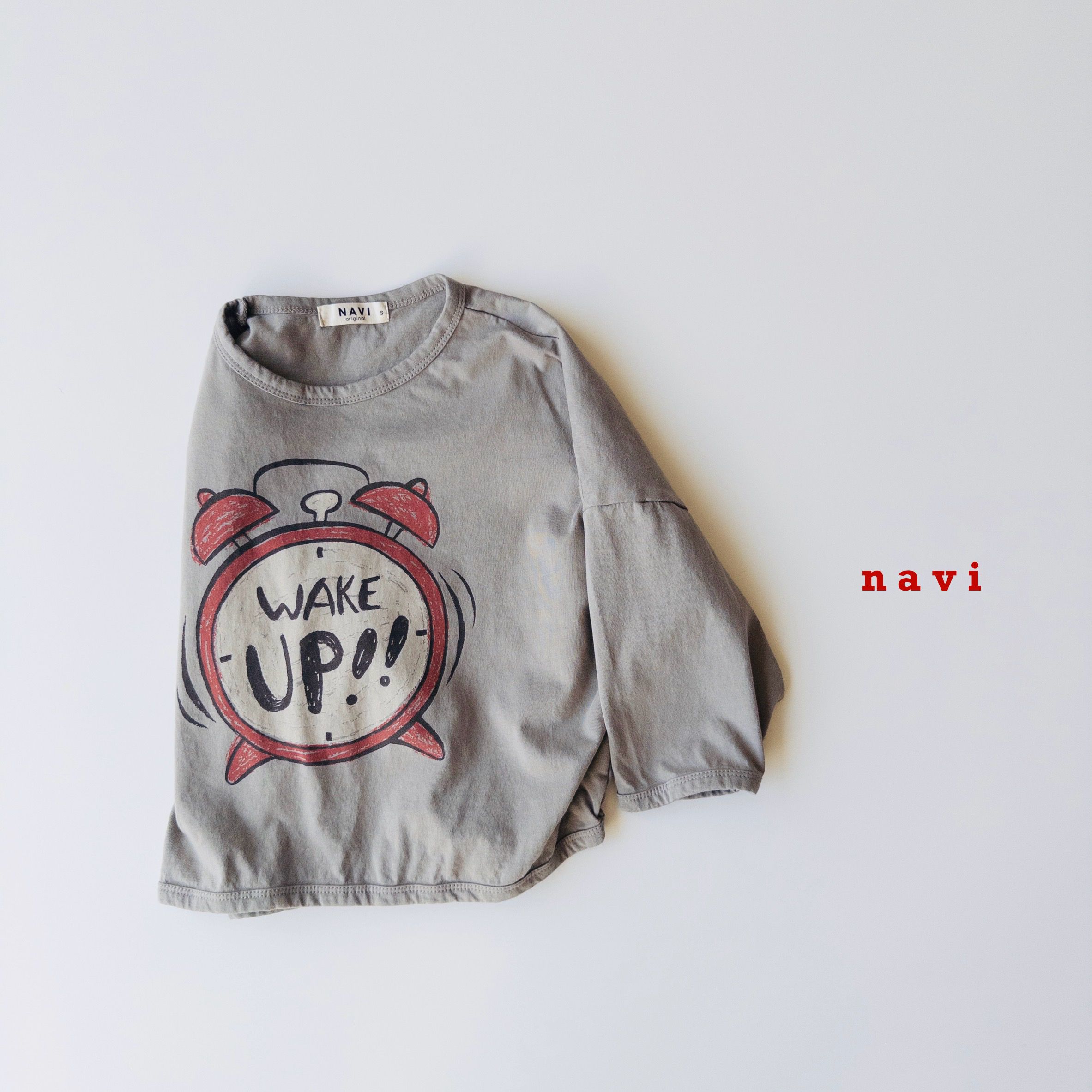 韓國 THE NAVi - 塗鴉鬧鐘純棉落肩長袖上衣