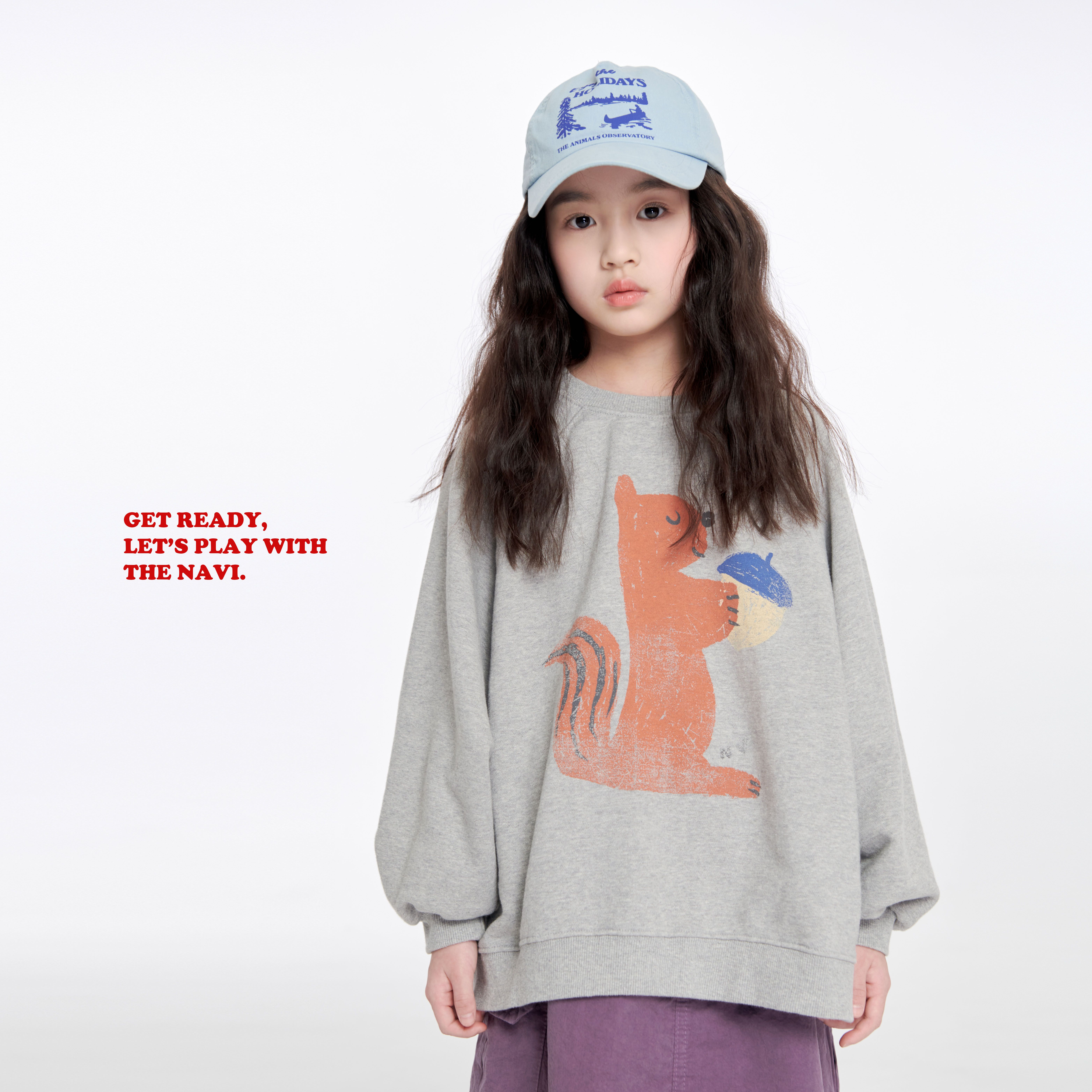 韓國 THE NAVi - 塗鴉松鼠純棉長袖大學T