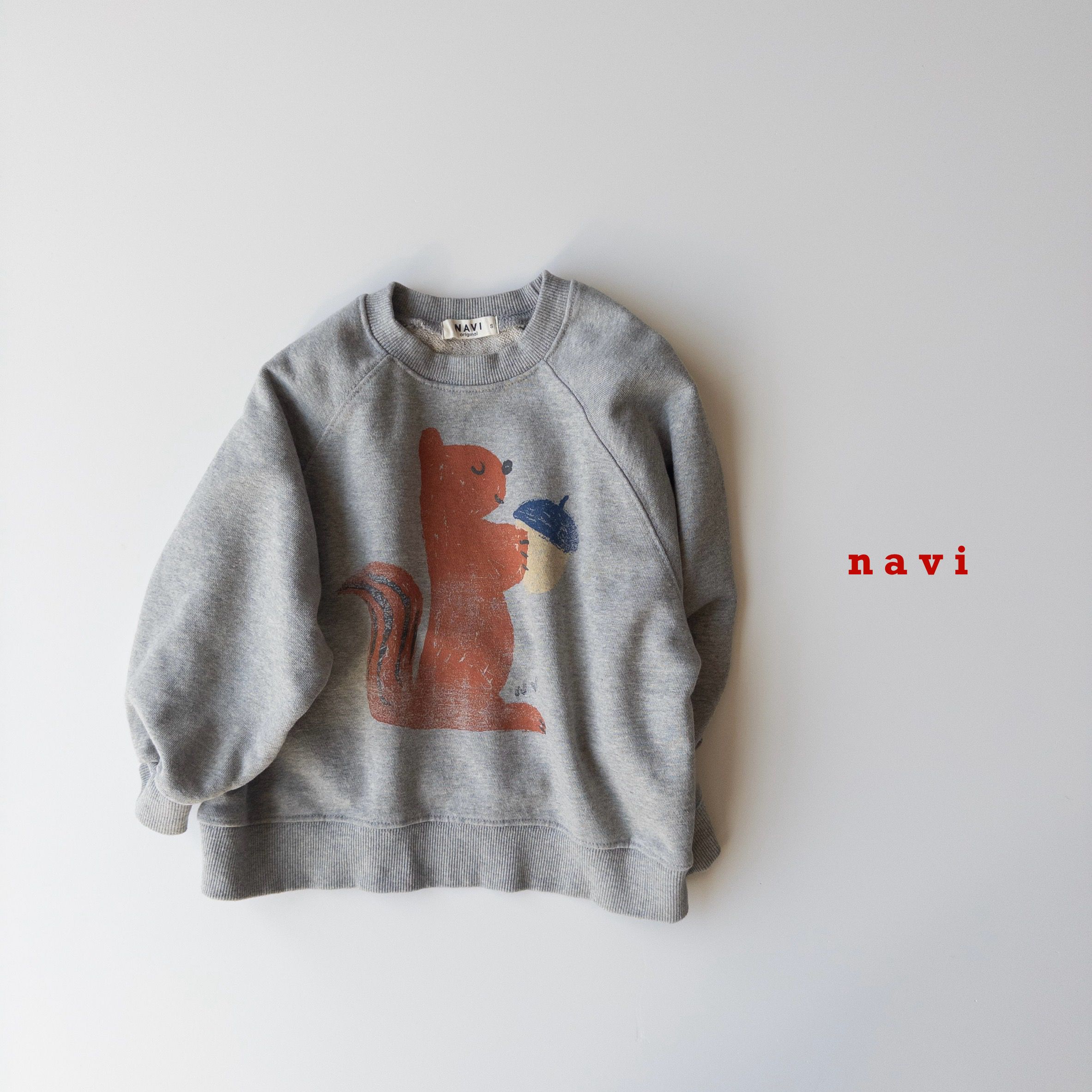 韓國 THE NAVi - 塗鴉松鼠純棉長袖大學T-灰