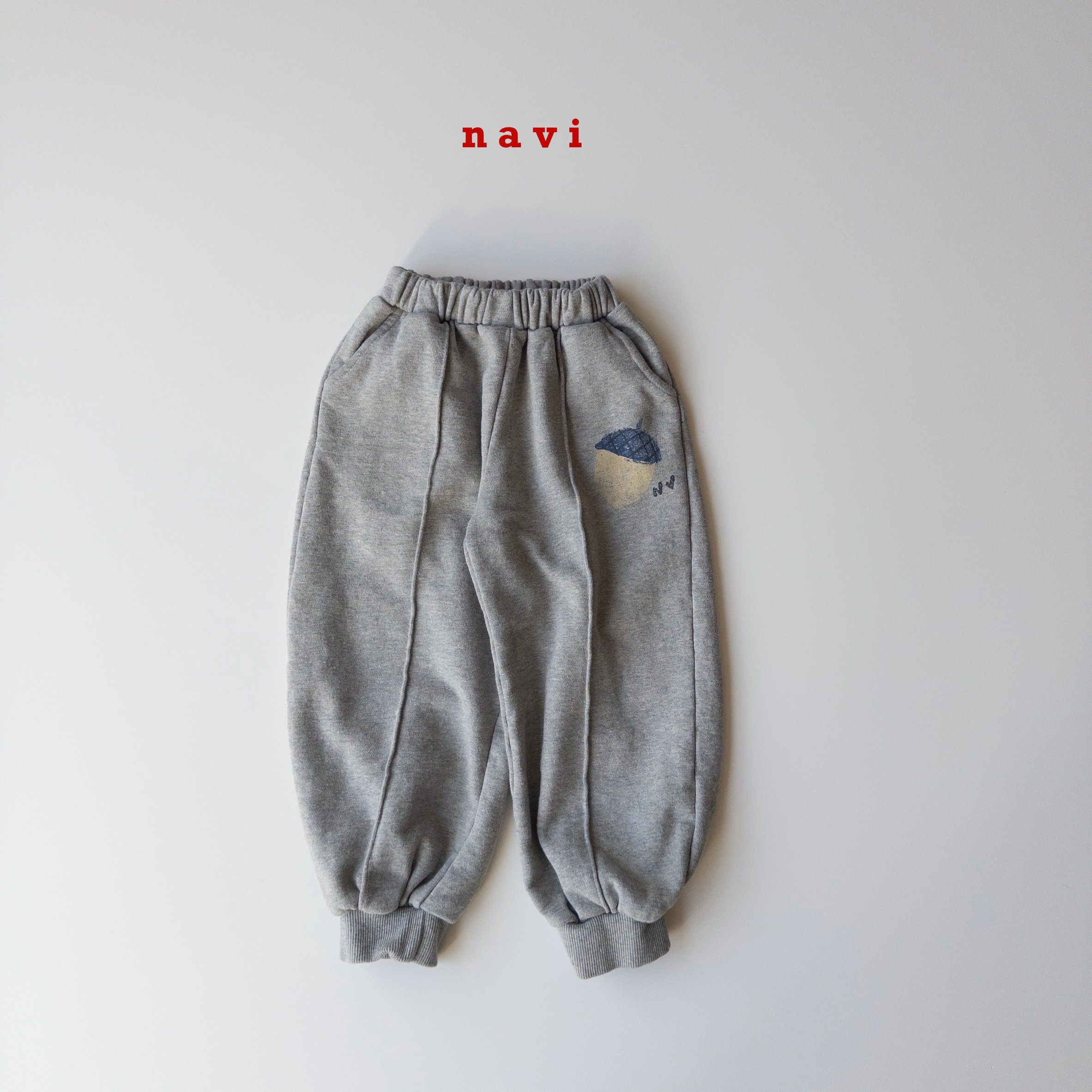 韓國 THE NAVi - 鬆緊腰塗鴉橡實純棉縮口褲-灰