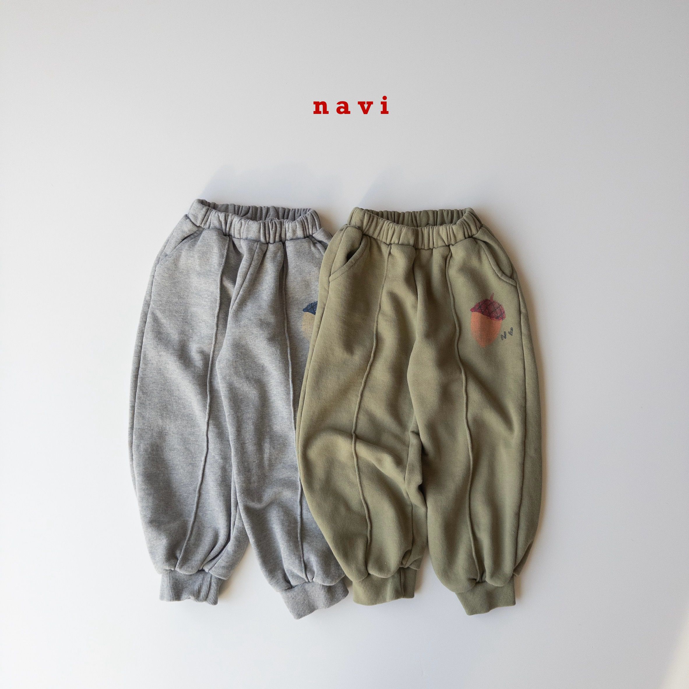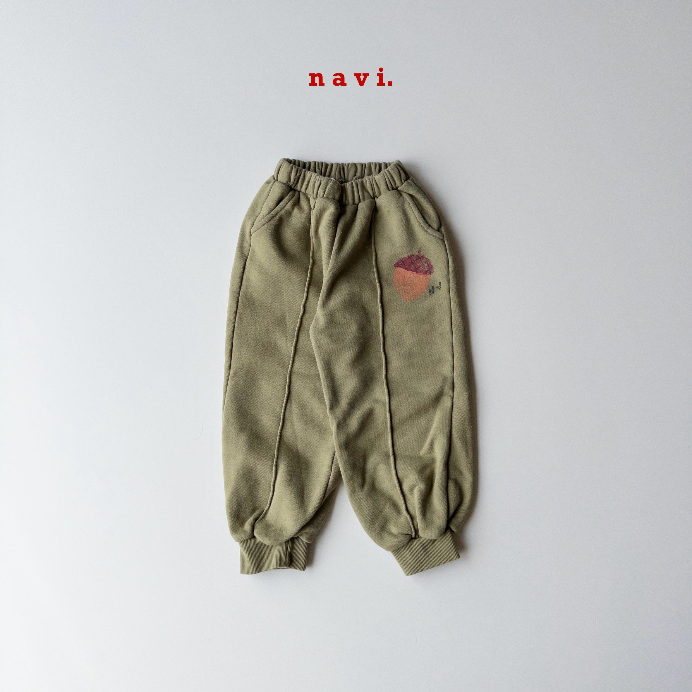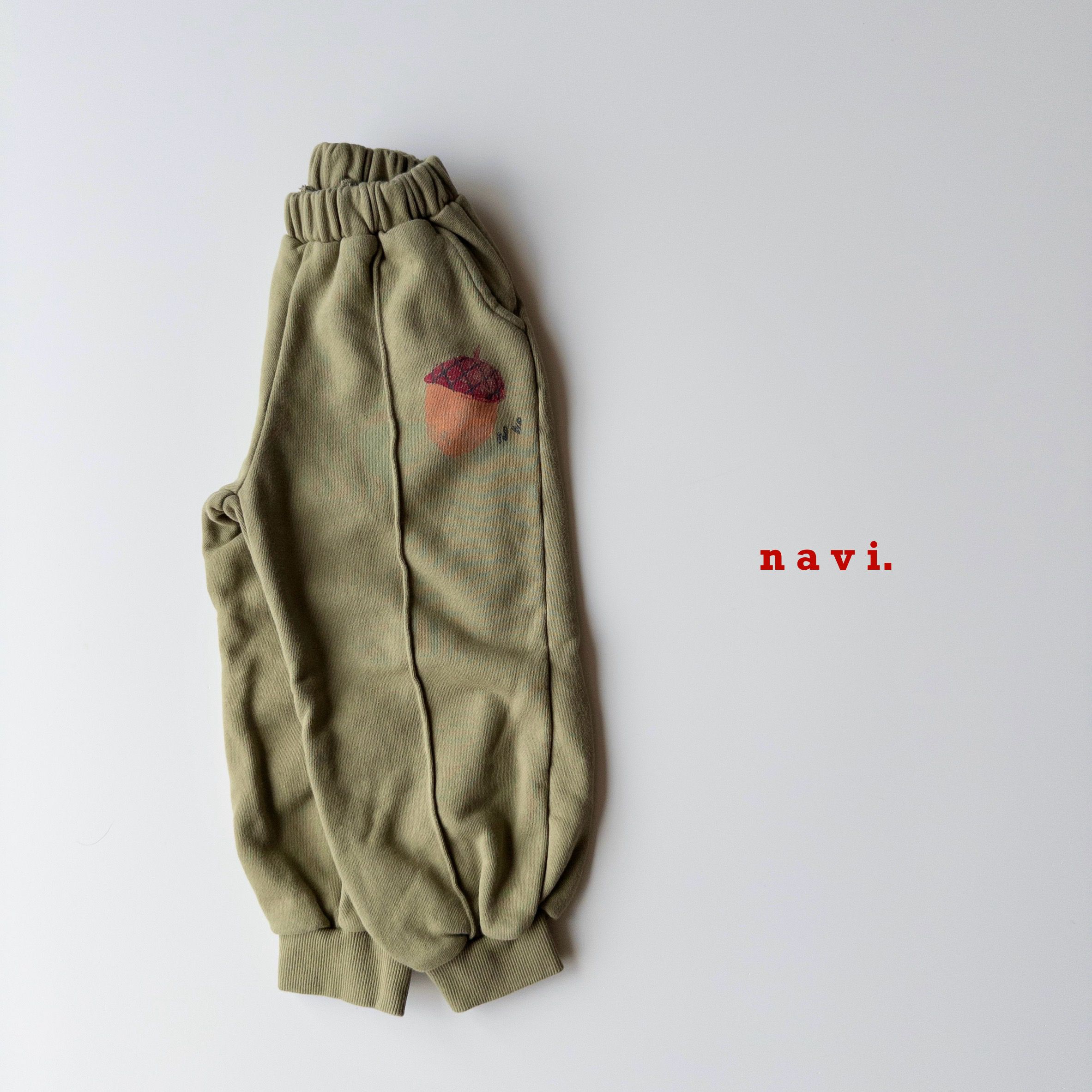 韓國 THE NAVi - 鬆緊腰塗鴉橡實純棉縮口褲-橄欖綠