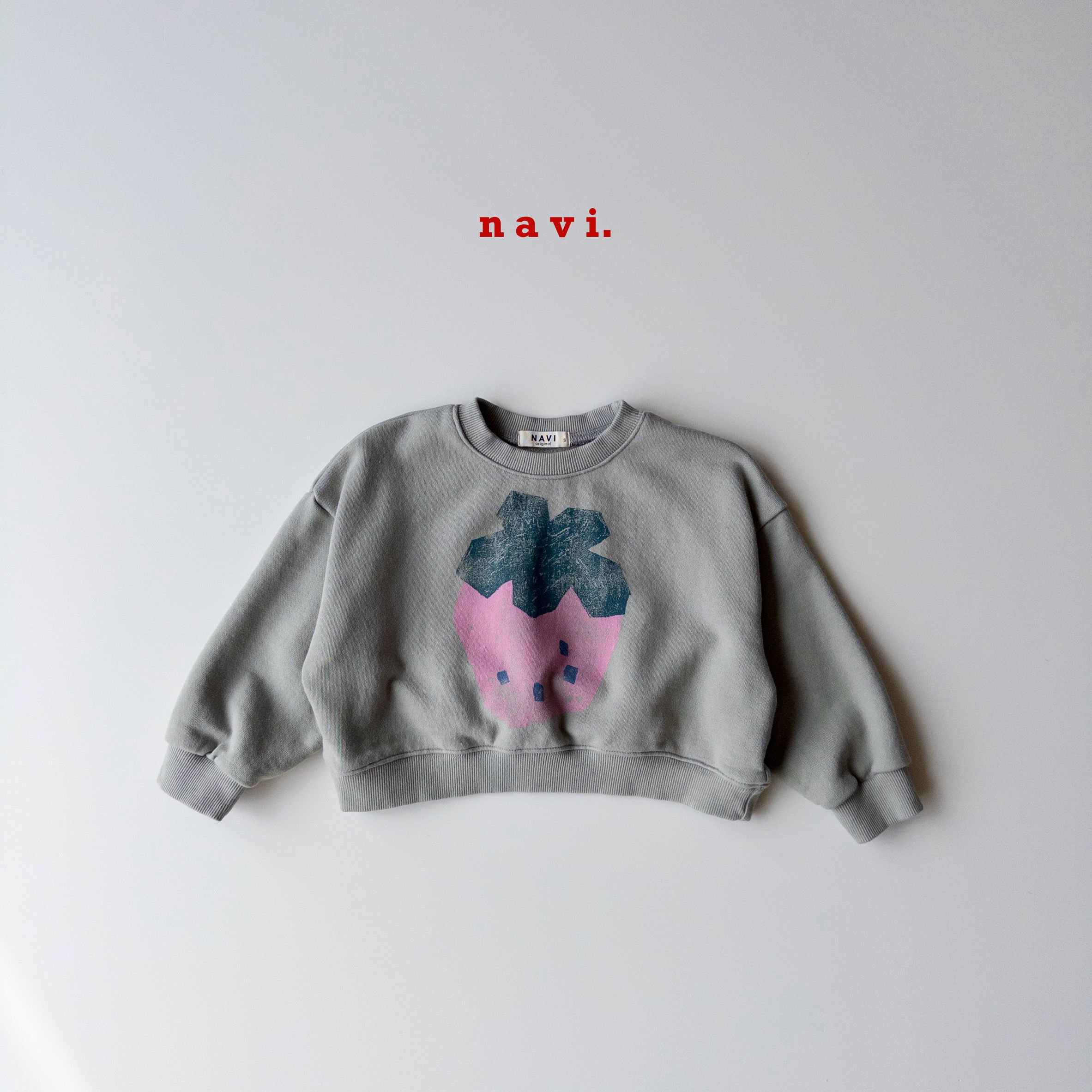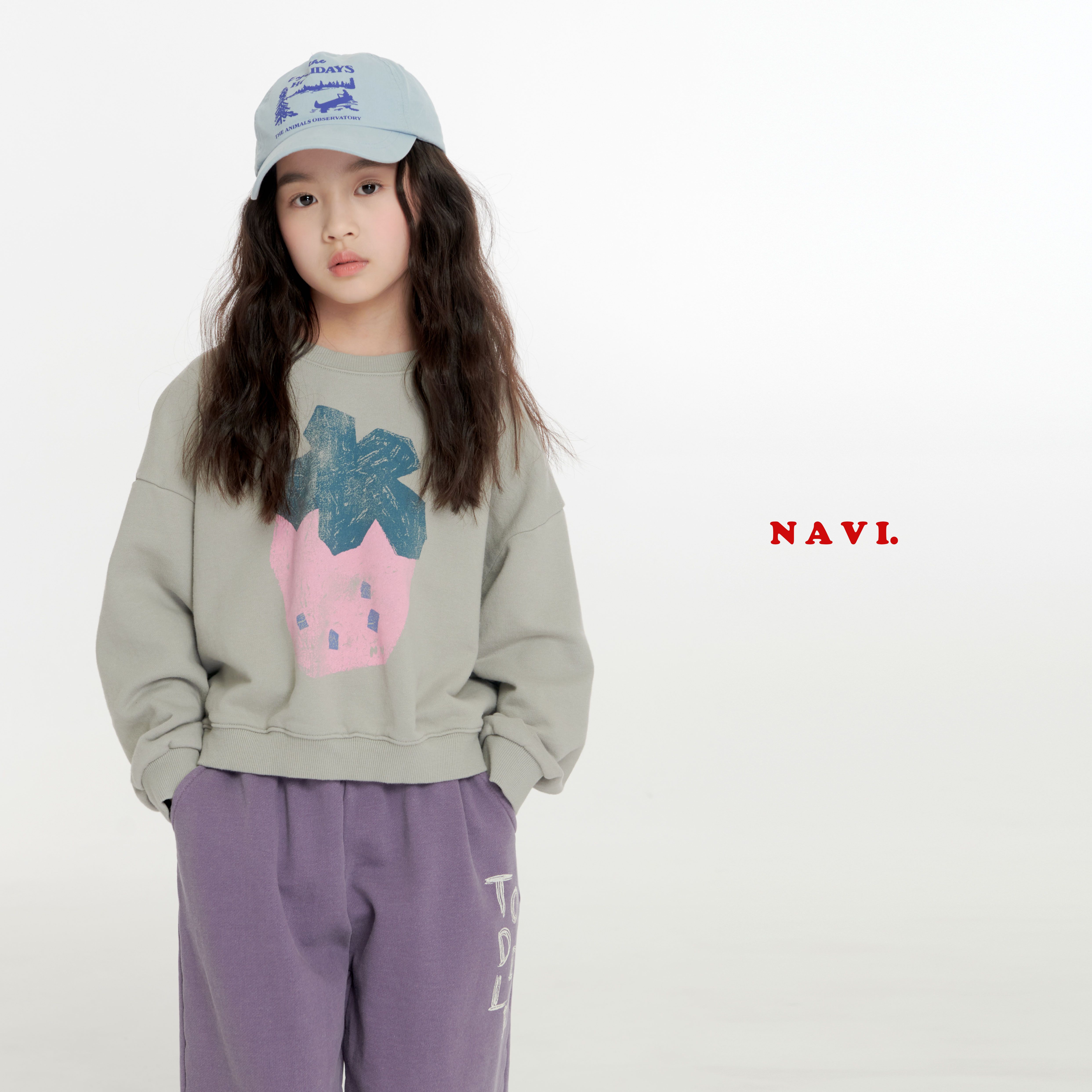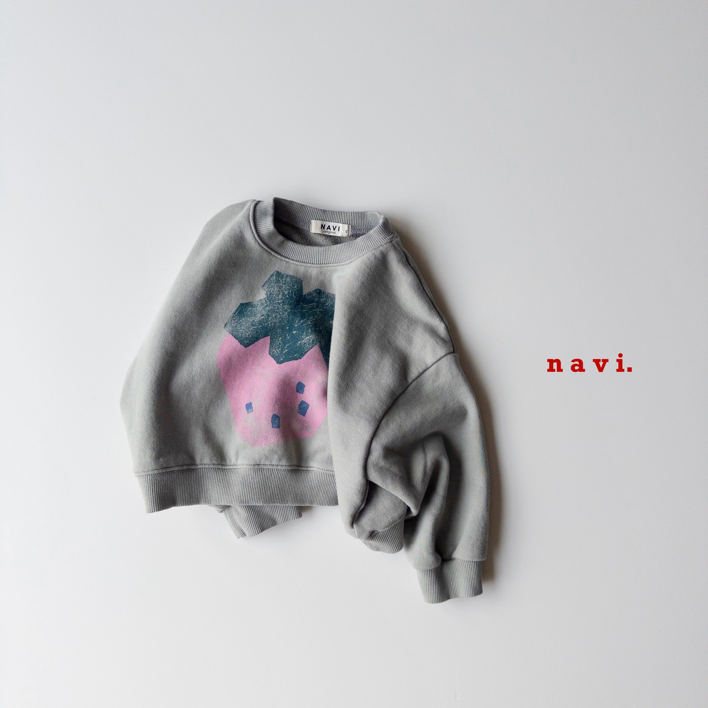 韓國 THE NAVi - 塗鴉草莓純棉短版長袖大學T-灰綠