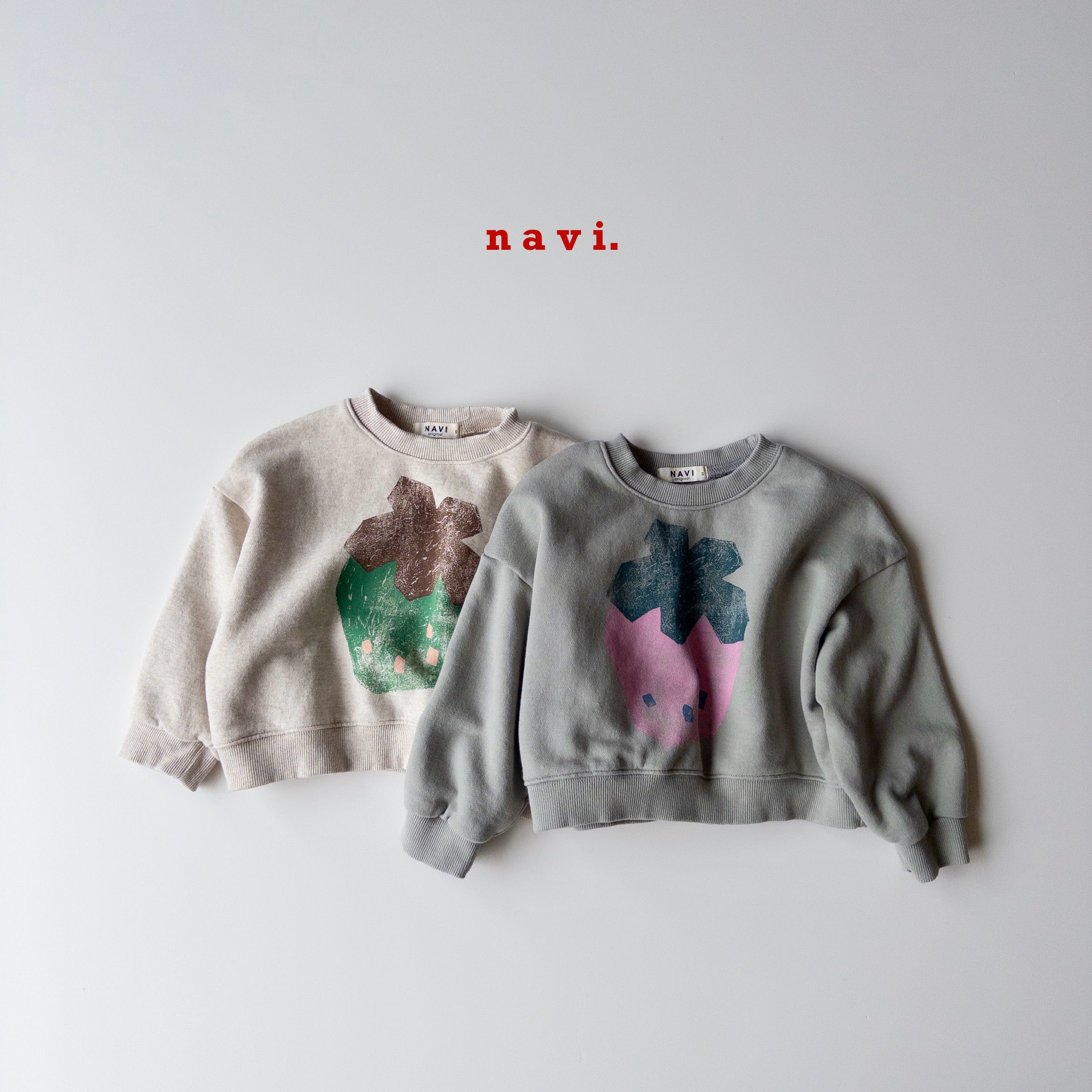 韓國 THE NAVi - 塗鴉草莓純棉短版長袖大學T