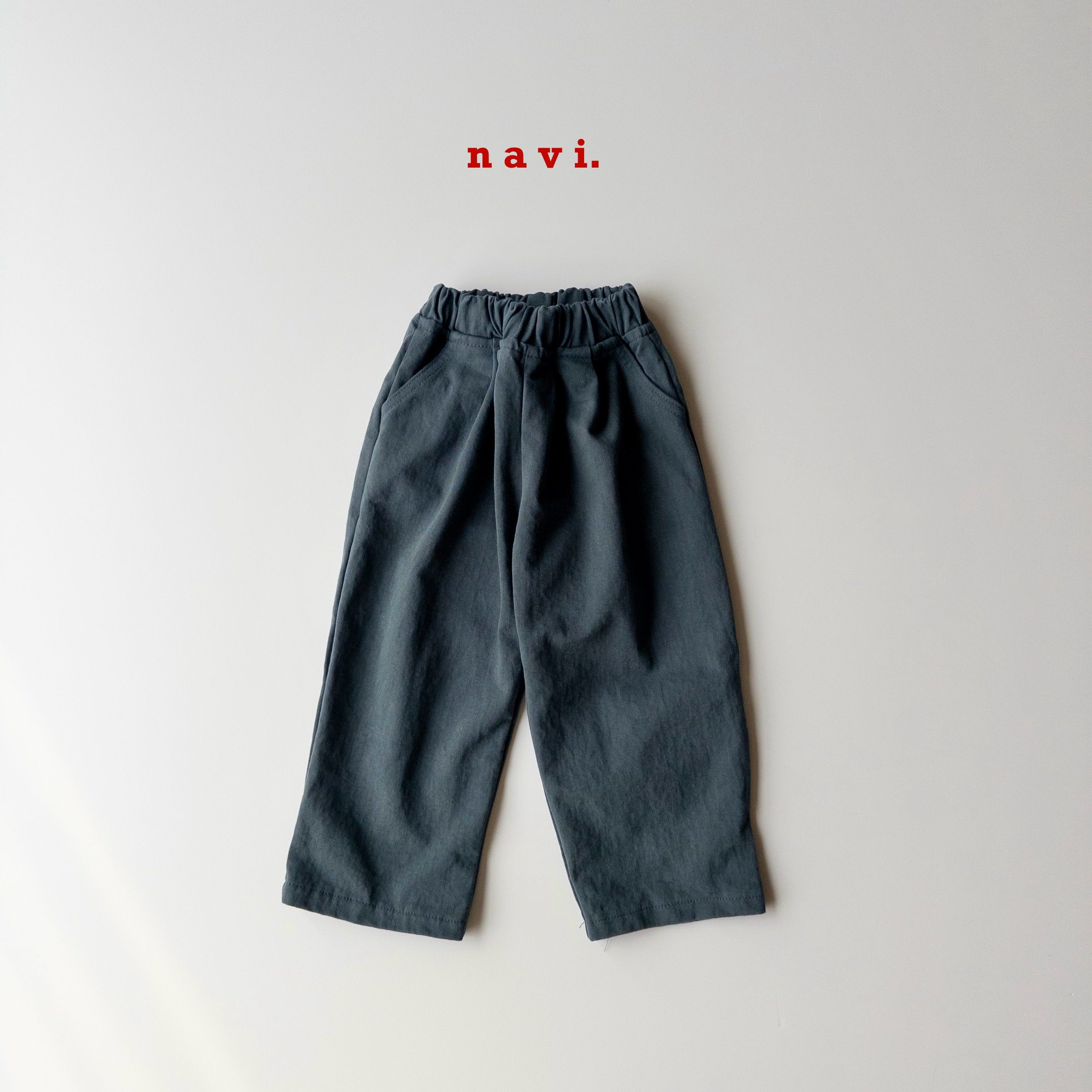 韓國 THE NAVi - 鬆緊腰極簡純棉寬鬆長褲-靛藍