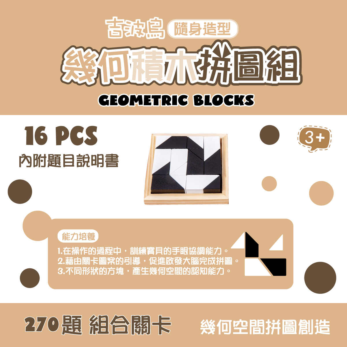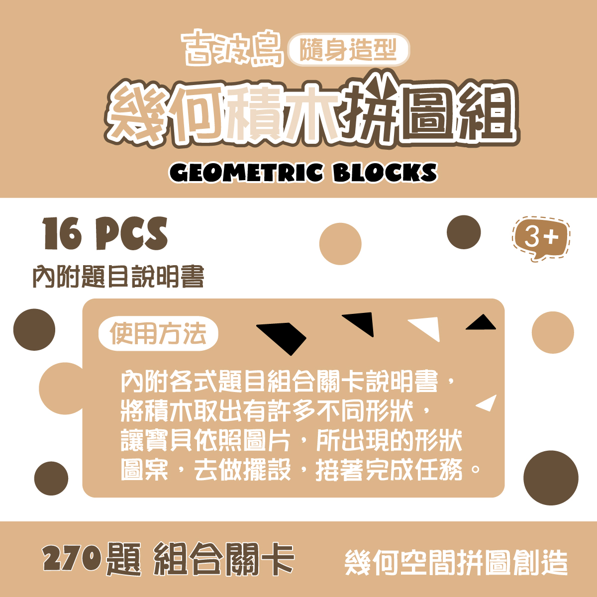 內附各式題目組合關卡說明書,將積木取出有許多不同形狀,讓寶貝依照圖片,所出現的形狀圖案,