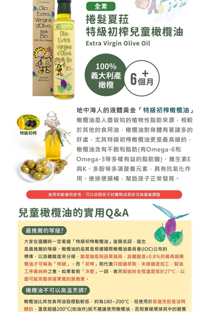 ★ 嚴選新鮮食材並把關食品安全與營養控制★ 使用義大利阿布魯佐地區橄欖,具細膩果香與柔和口感★ 100%手工採摘,冷壓製成,未經過度加工,完整保留果實的營養素★ 優質植物性脂肪來源,含Omega-3等多樣有益的脂肪酸★ 適用於一般家庭烹飪,也可不加熱淋在各式料理上食用,輕鬆備好一餐★ 無添加人工添加物、香料、色素及調味品★ 環保紙質包裝+開窗設計,看得見商品實體好安心!★ 使用對環境無害可分解的天然墨水印製,取於自然也回歸自然★ 容量: 250ml/罐★ 適用年齡: 6個月+