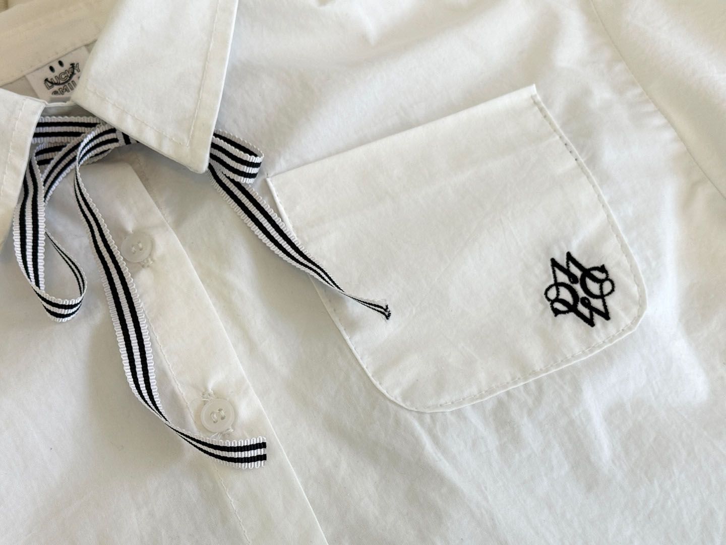 • 品名:綁帶裝飾學院風格長袖襯衫