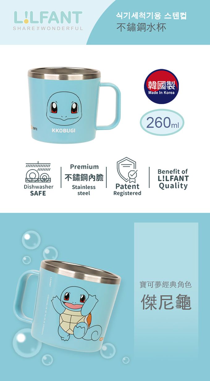 韓國 Lilfant - 不鏽鋼水杯-傑尼龜-260ml