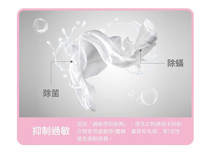 注意事項:【商品規格】 成分:癸基烷基糖苷、月桂醇聚氧化乙烯醚鈉鹽、聚氧乙烯月桂醇醚、液體蛋白酵素、鳳梨蛋白酵素、聚丙烯酸鈉、氯化鈉、硫酸鈉、過敏原抑制劑、檸檬酸、葡萄糖酸氯己定、蘆薈萃取液、尤加利精油、香精、防腐劑、純水 容量:800ml 產地:台灣 【注意事項】 ● 色牢度差,泡水即會褪色之衣物,請分開洗滌,若不確定衣物是否會褪色,建議以衣角或不明顯處預先測試。 ● 請留意衣物之洗滌標示,若為不可水洗或需乾洗之衣物,請勿使用本產品。 ● 請放置於兒童不易取得處,若不慎誤食,請先喝下大量開水,並盡快就醫。 ● 若不慎誤入眼睛,可先以大量清水沖洗眼睛,並盡快送醫。 ● 肌膚易於敏感者,可戴手套加強保護。 ● 本產品開封使用後,日久pH值、外觀可能產生些微變化,屬正常現象,不影響清潔效果。 ● 本商品經拆封後,恕不得退換貨。 ● 適用範圍:適用於棉、麻、化纖及混紡等質料之衣物。 ● 使用方法:請參照包裝建議用量表進行使用,可視衣物多寡及髒污程度酌量增減。